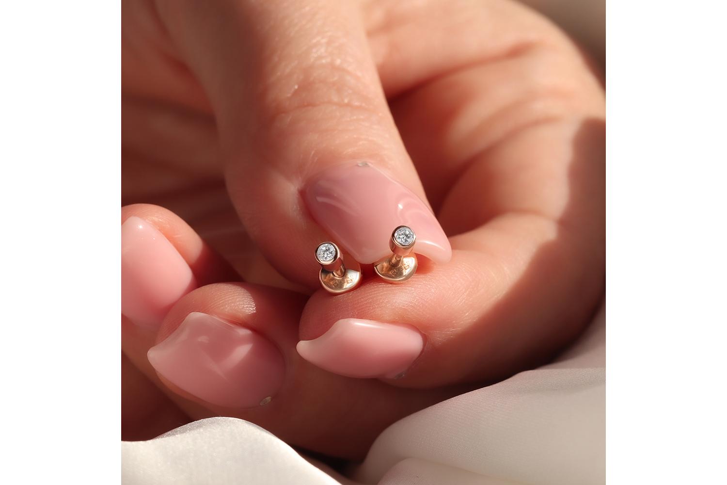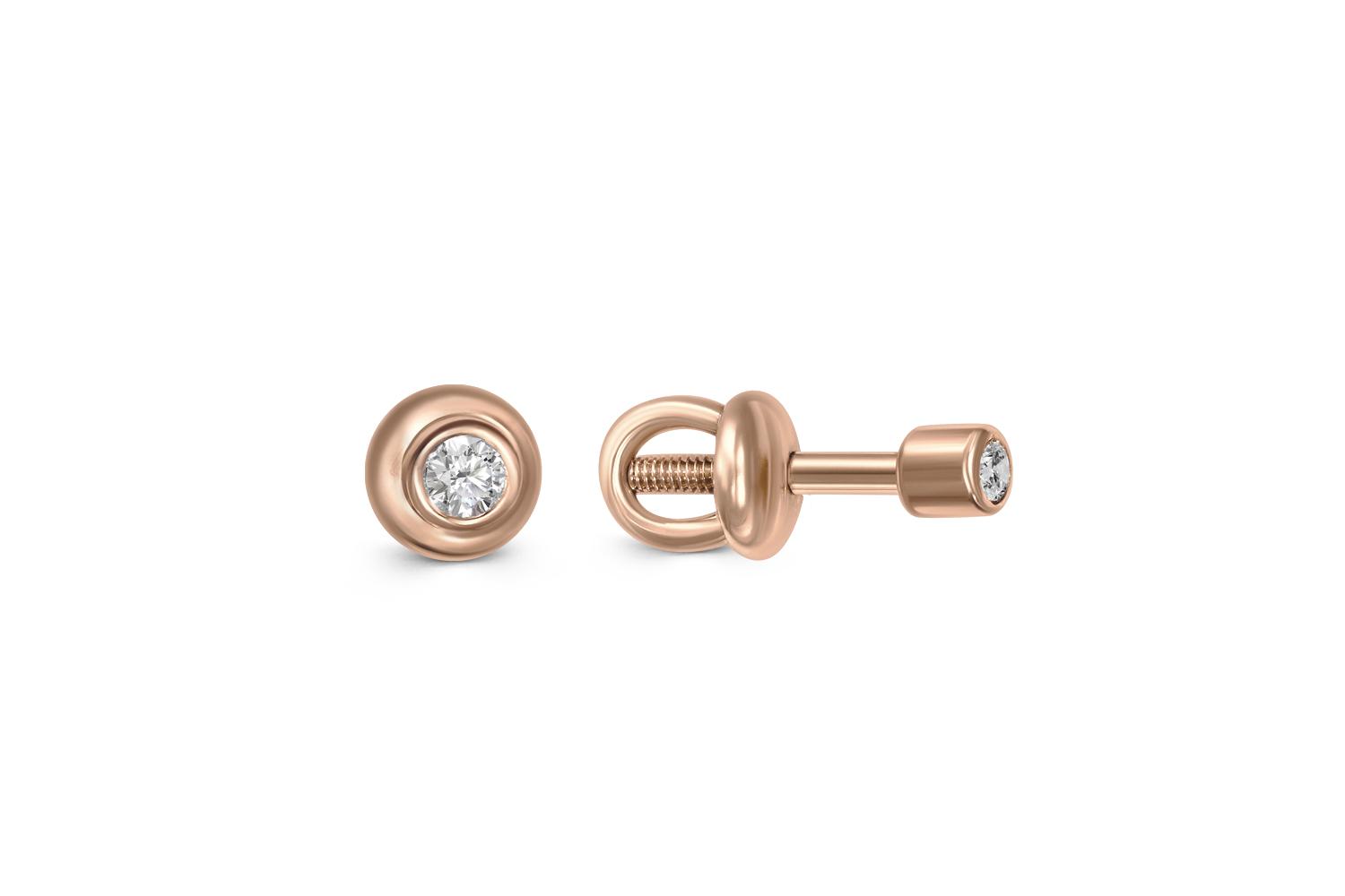 Мастера компании NEWGOLD, приложив всё свое мастерство и искусство, создали для Вас на нашем собственном производстве Серьги-пусеты из красного золота с 2 фианитами.