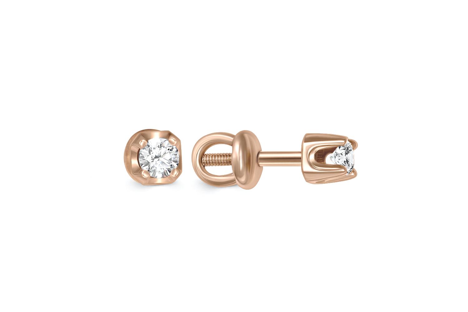 Мастера компании NEWGOLD, приложив всё свое мастерство и искусство, создали для Вас на нашем собственном производстве Серьги-пусеты из красного золота с 2 бриллиантами.