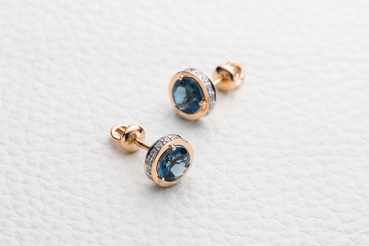 Закажите Серьги-пусеты из красного золота с 2 топазами лондон и 32 фианитами с получением в Москве через курьерскую службу доставки напрямую с нашего производственного склада завода NEWGOLD!