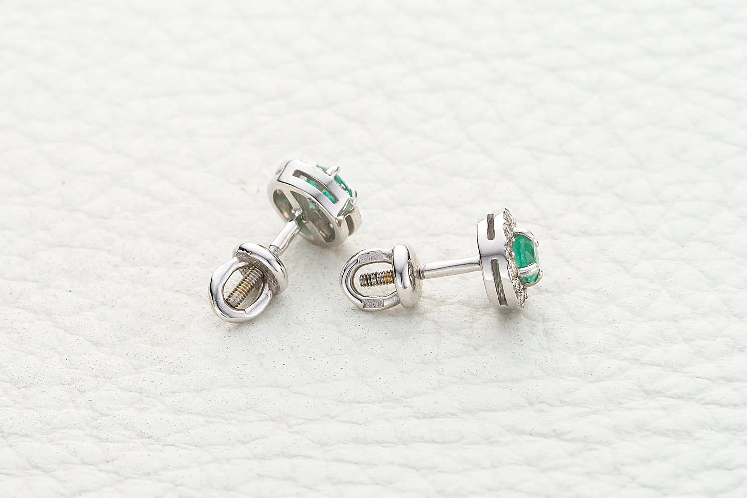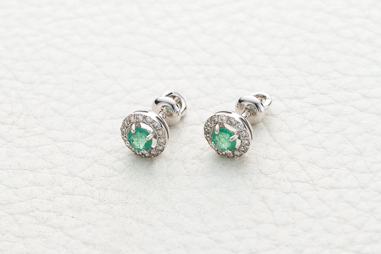 Мастера компании NEWGOLD, приложив всё свое мастерство и искусство, создали для Вас на нашем собственном производстве Серьги-пусеты из белого золота с 2 изумрудами и 28 бриллиантами.