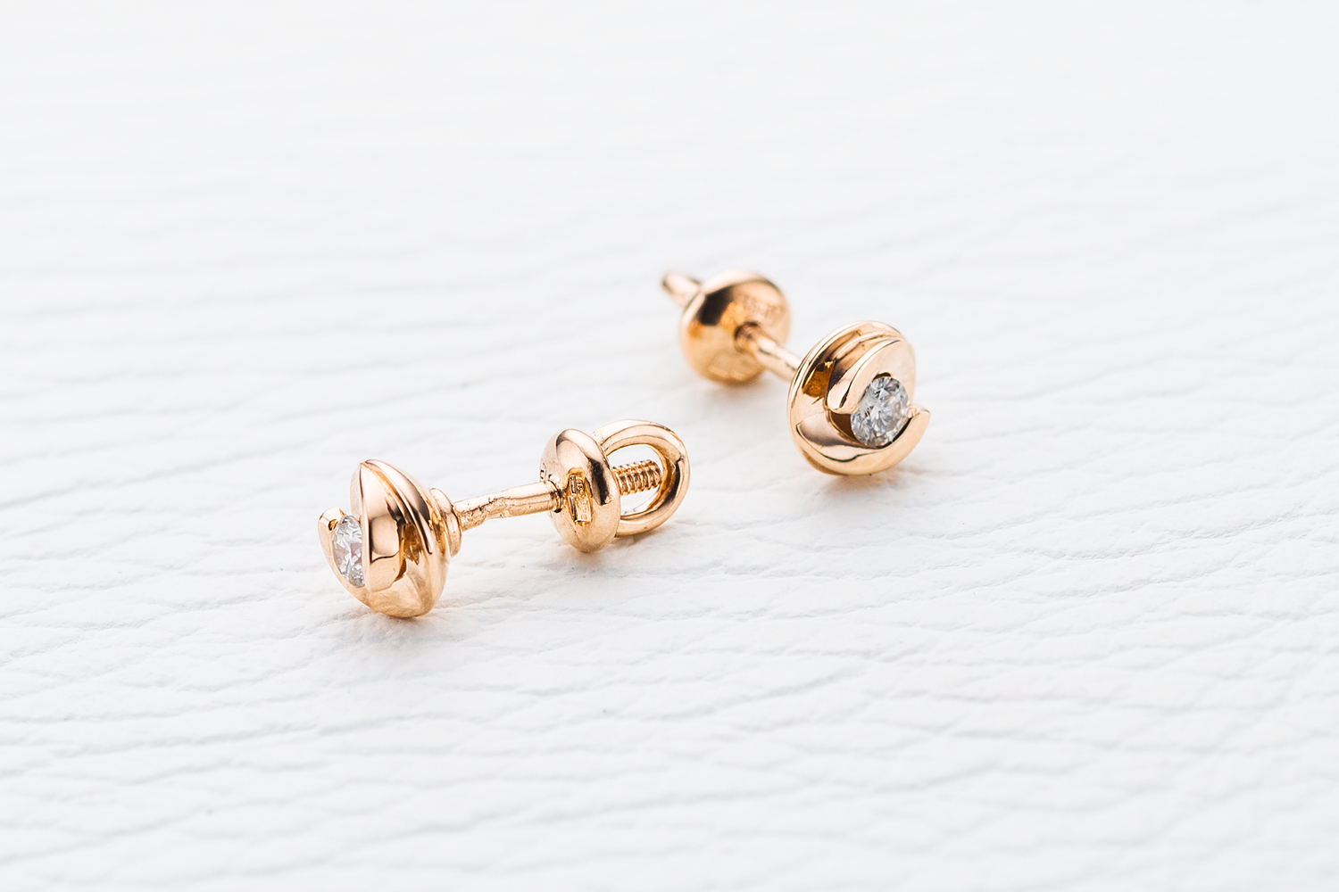 Закажите Серьги-пусеты из красного золота с 2 бриллиантами с получением в Москве через курьерскую службу доставки напрямую с нашего производственного склада завода NEWGOLD!