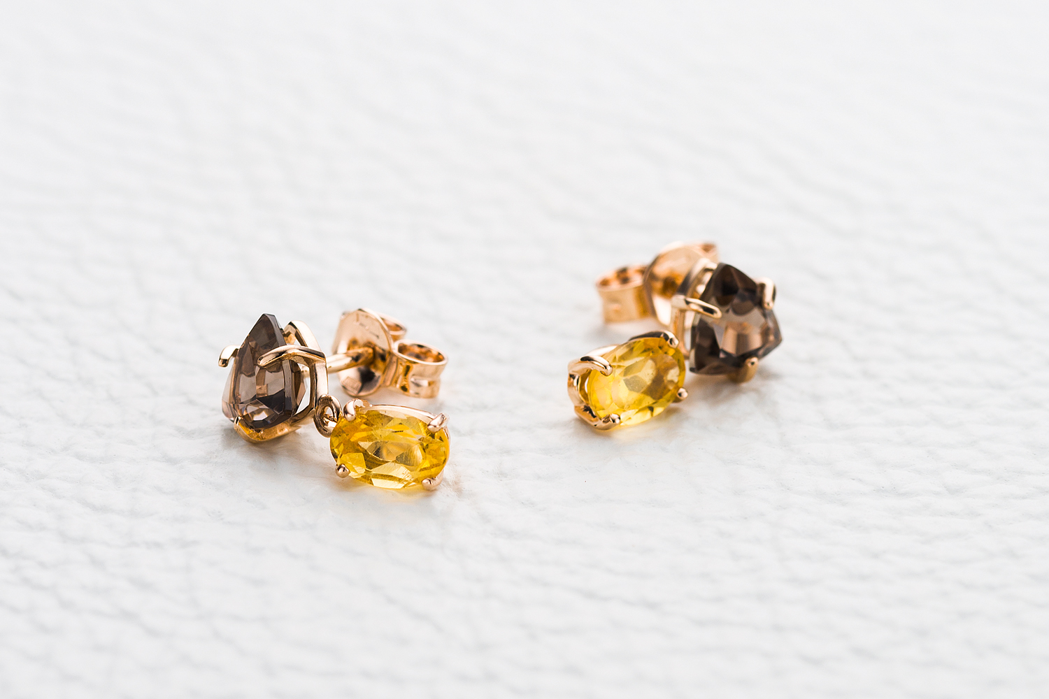 Мастера компании NEWGOLD, приложив всё свое мастерство и искусство, создали для Вас на нашем собственном производстве Серьги-пусеты из красного золота с 2 раухтопазами и 2 цитринами.