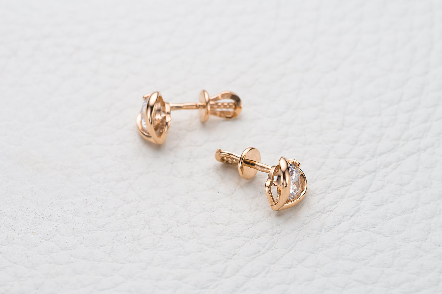 Мастера компании NEWGOLD, приложив всё свое мастерство и искусство, создали для Вас на нашем собственном производстве Серьги-пусеты из красного золота с 2 фианитами.
