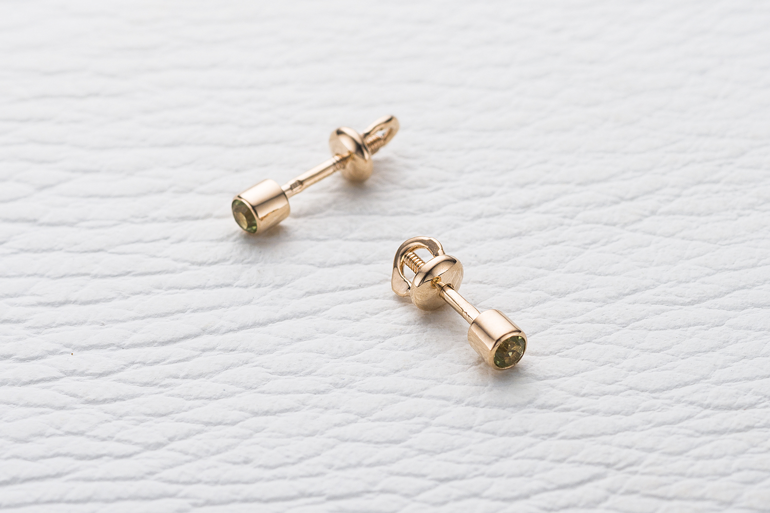 Мастера компании NEWGOLD, приложив всё свое мастерство и искусство, создали для Вас на нашем собственном производстве Серьги-пусеты из красного золота с 2 хризолитами.
