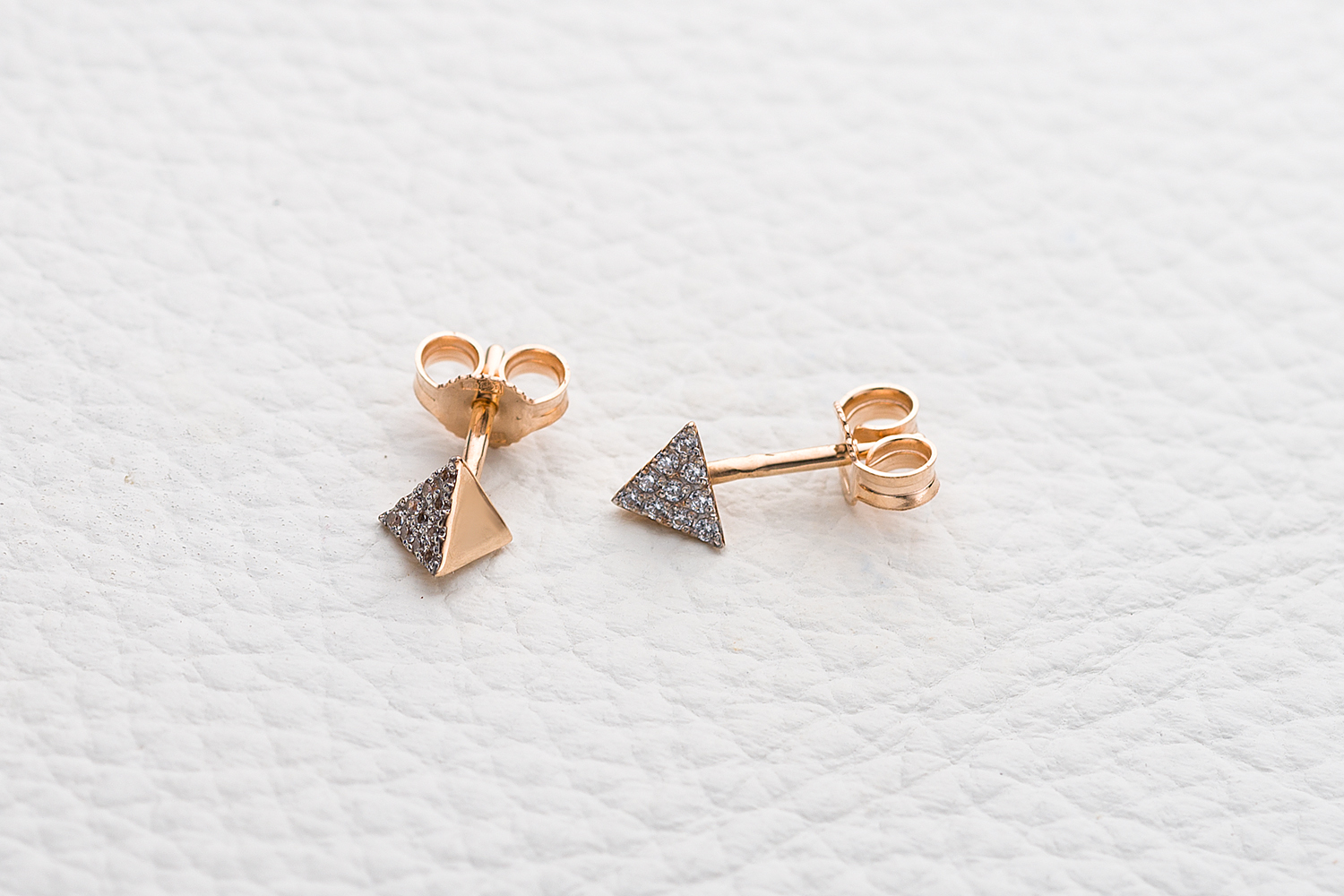 Мастера компании NEWGOLD, приложив всё свое мастерство и искусство, создали для Вас на нашем собственном производстве Серьги-пусеты Треугольники из красного золота с 20 фианитами.