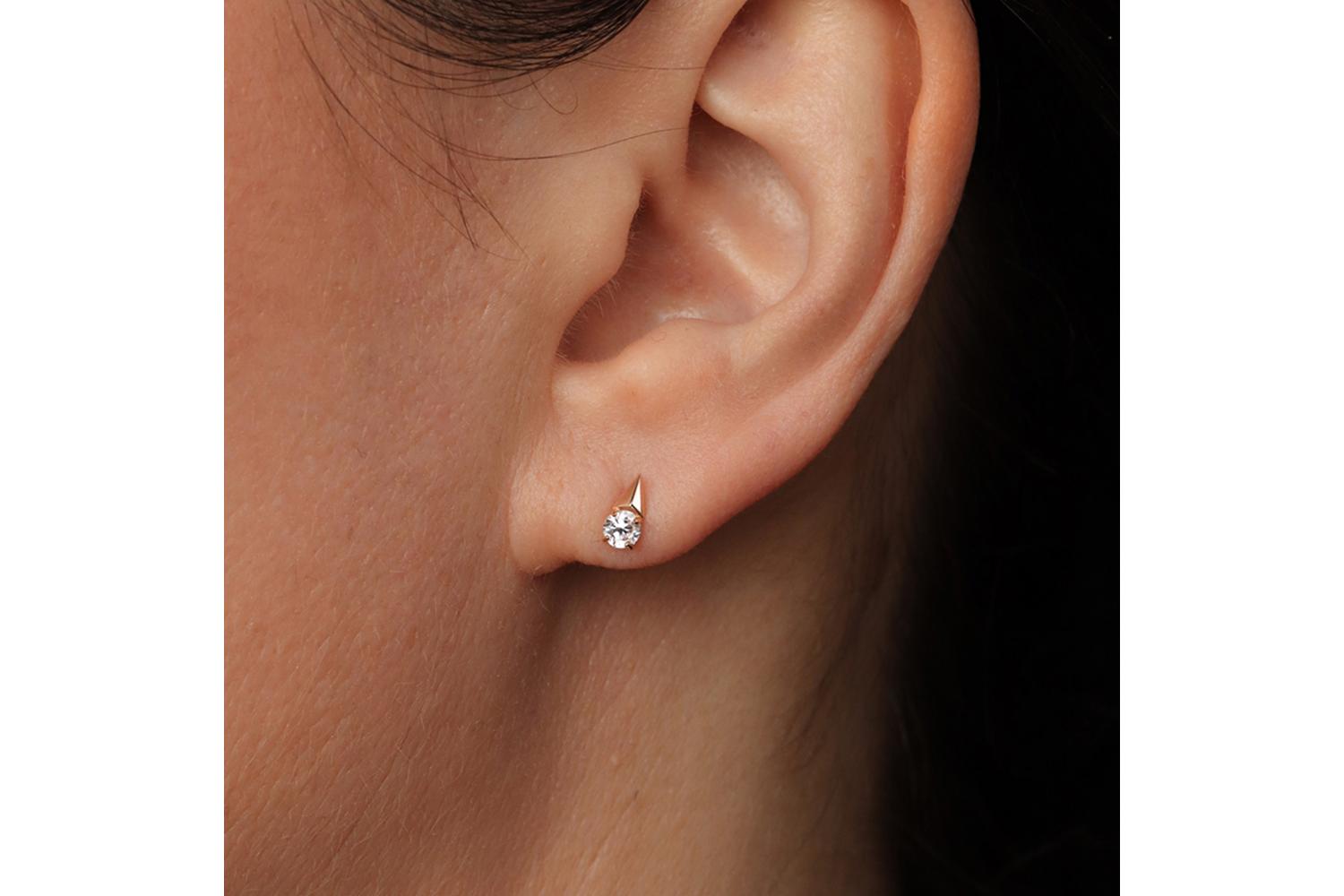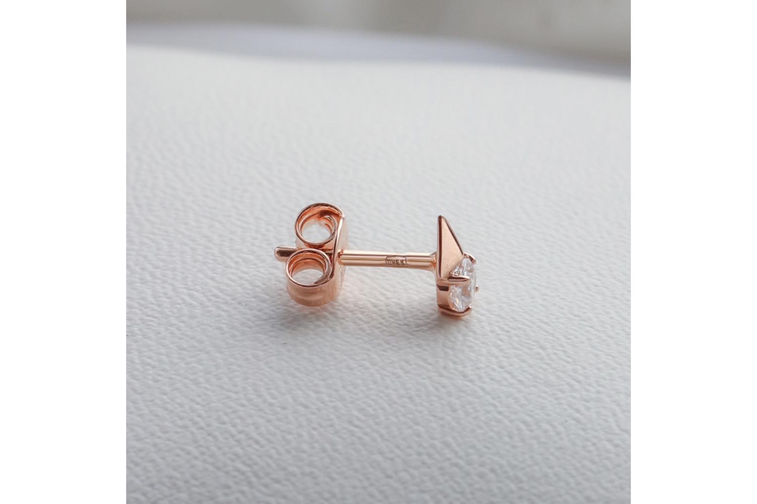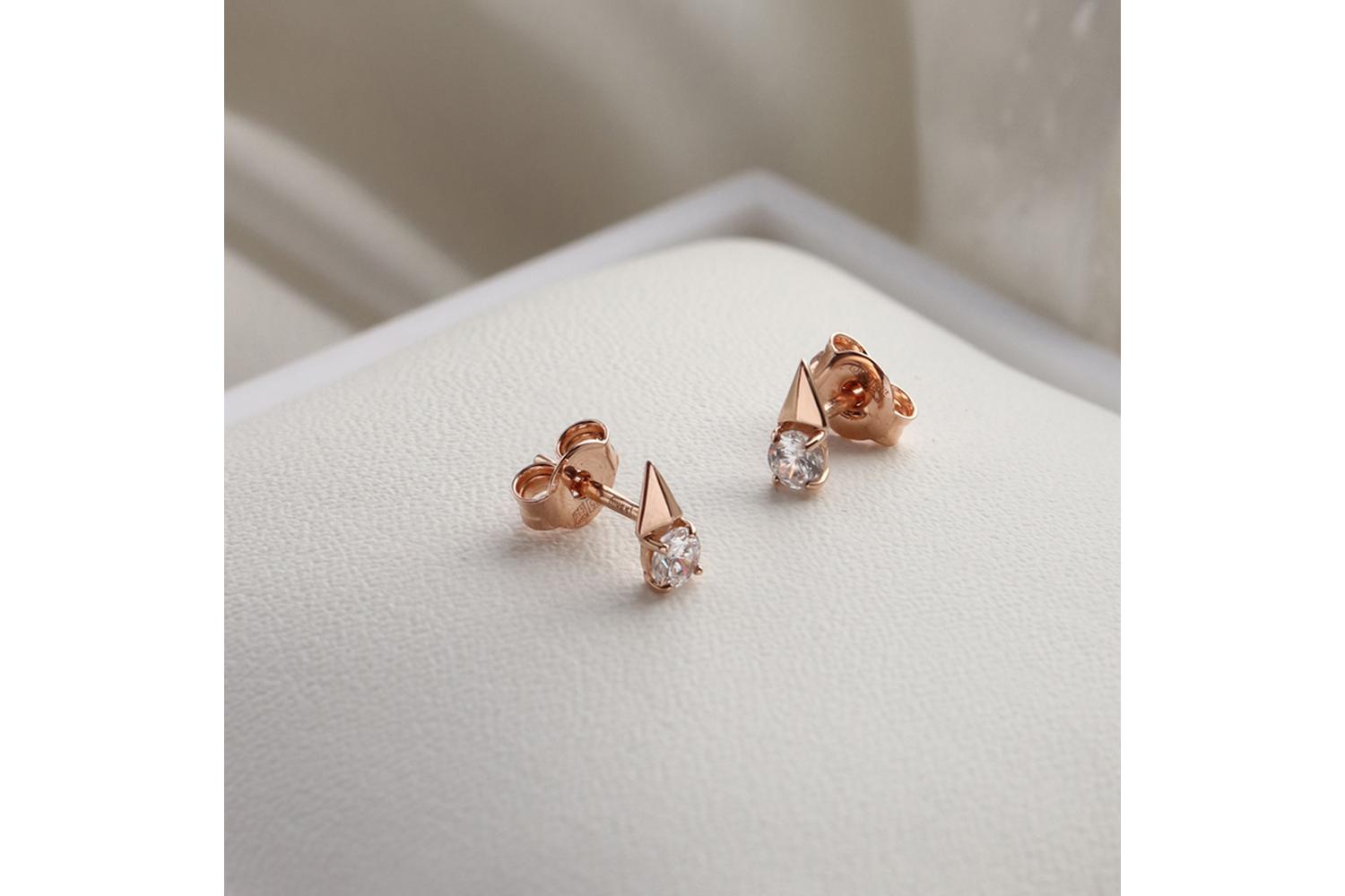 Мастера компании NEWGOLD, приложив всё свое мастерство и искусство, создали для Вас на нашем собственном производстве Серьги-пусеты из красного золота с 2 фианитами.