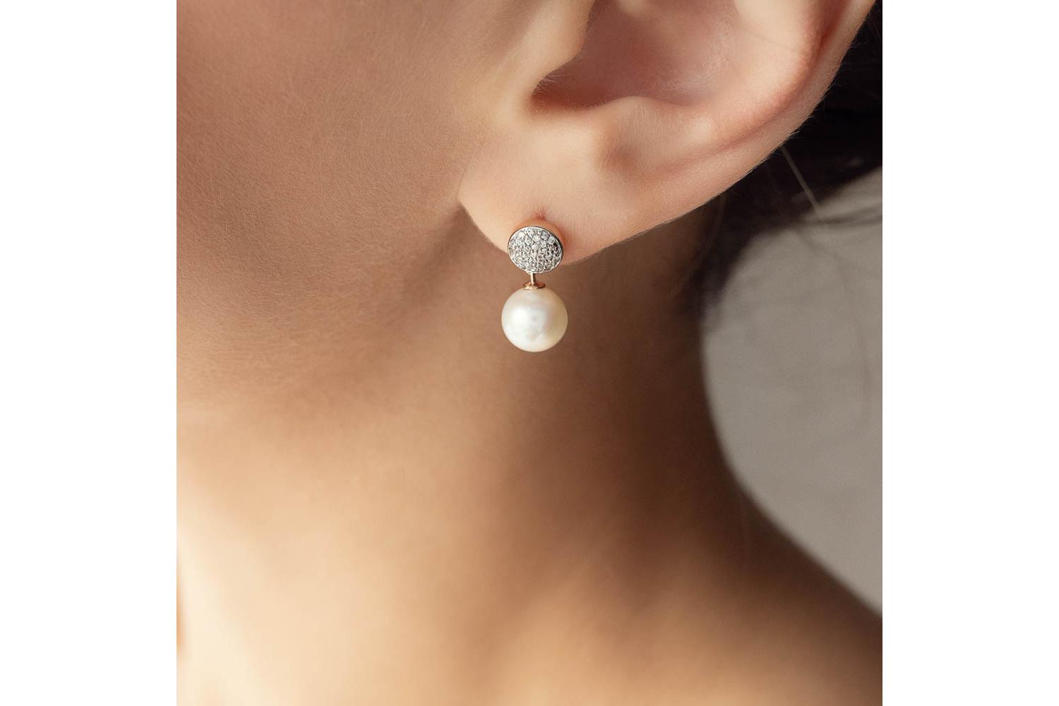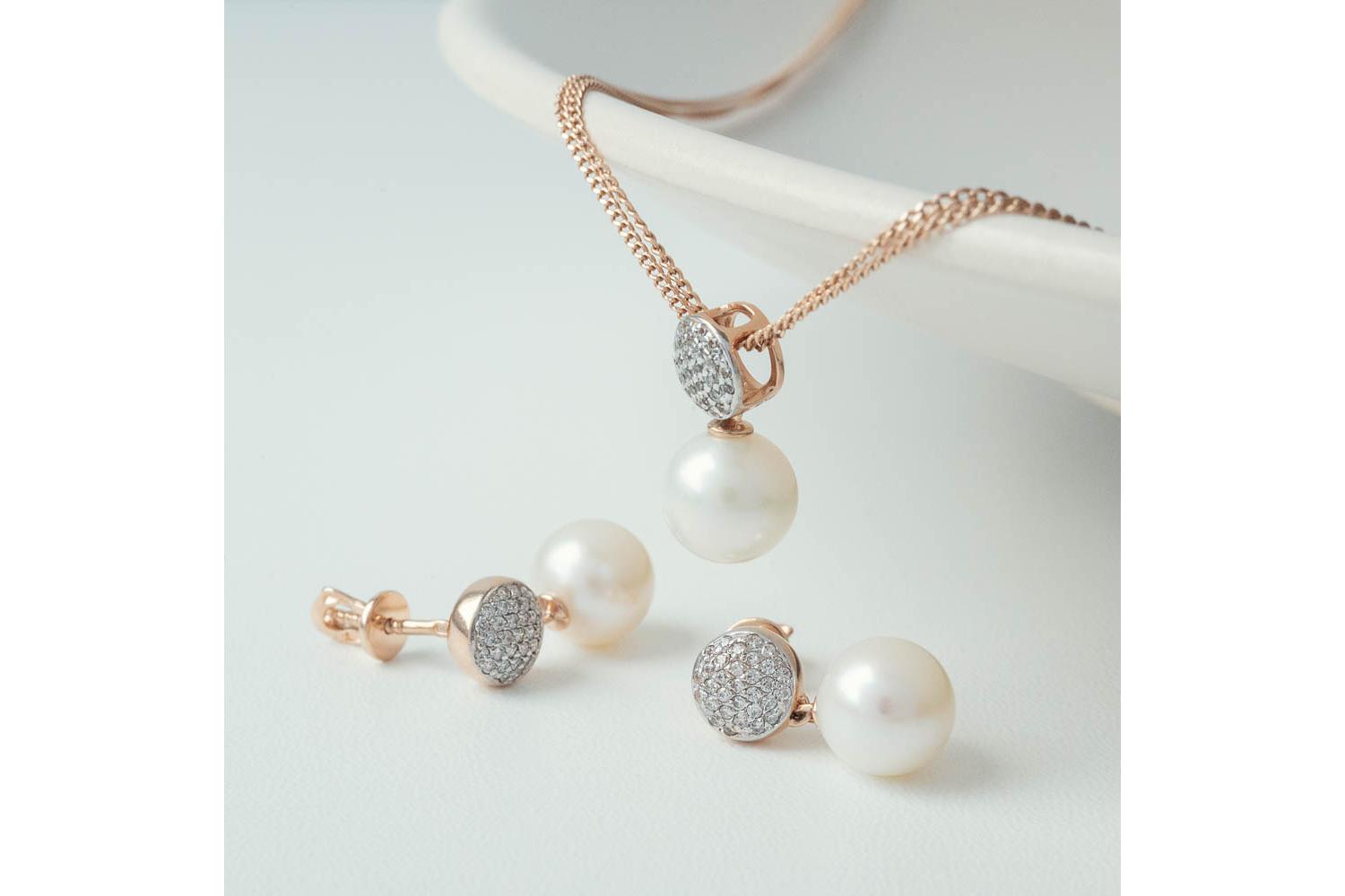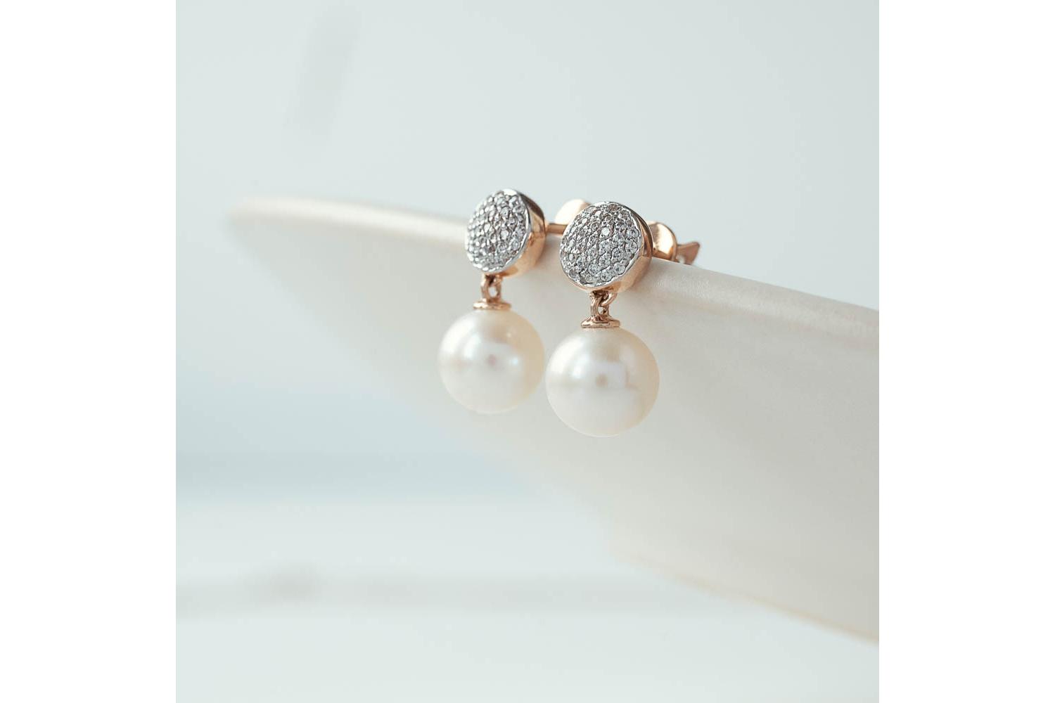 Мастера компании NEWGOLD, приложив всё свое мастерство и искусство, создали для Вас на нашем собственном производстве Серьги-пусеты из красного золота с 2 жемчужинами и 62 фианитами.