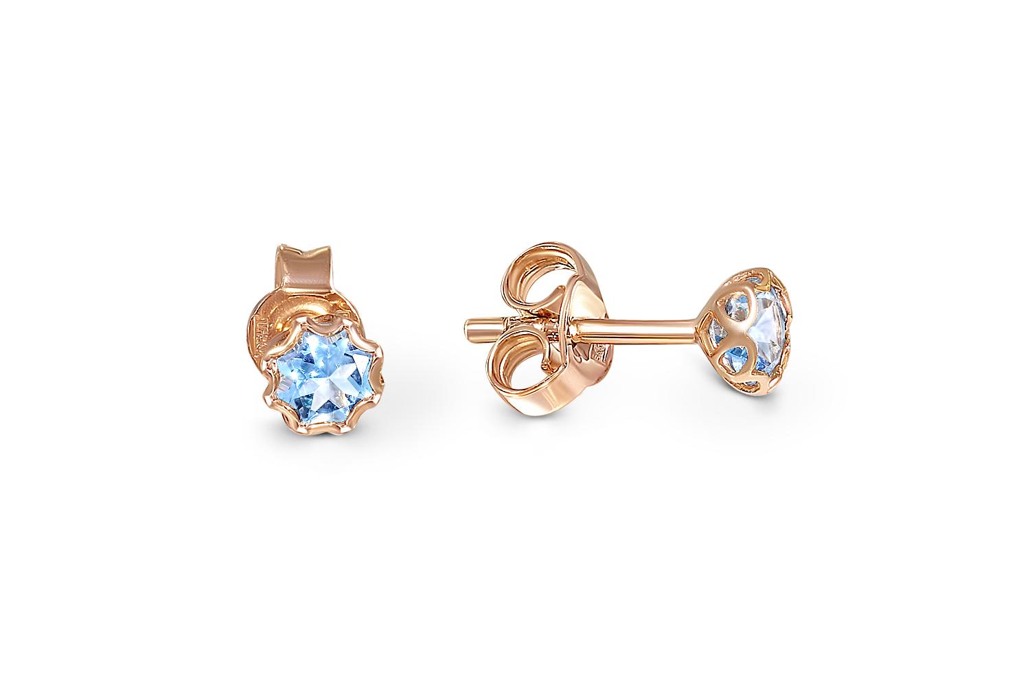 Закажите Серьги-пусеты из красного золота с 2 топазами sky с получением в Москве через курьерскую службу доставки напрямую с нашего производственного склада завода NEWGOLD!