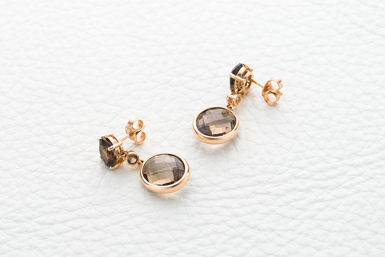 Мастера компании NEWGOLD, приложив всё свое мастерство и искусство, создали для Вас на нашем собственном производстве Серьги-пусеты из красного золота с 6 раухтопазами.