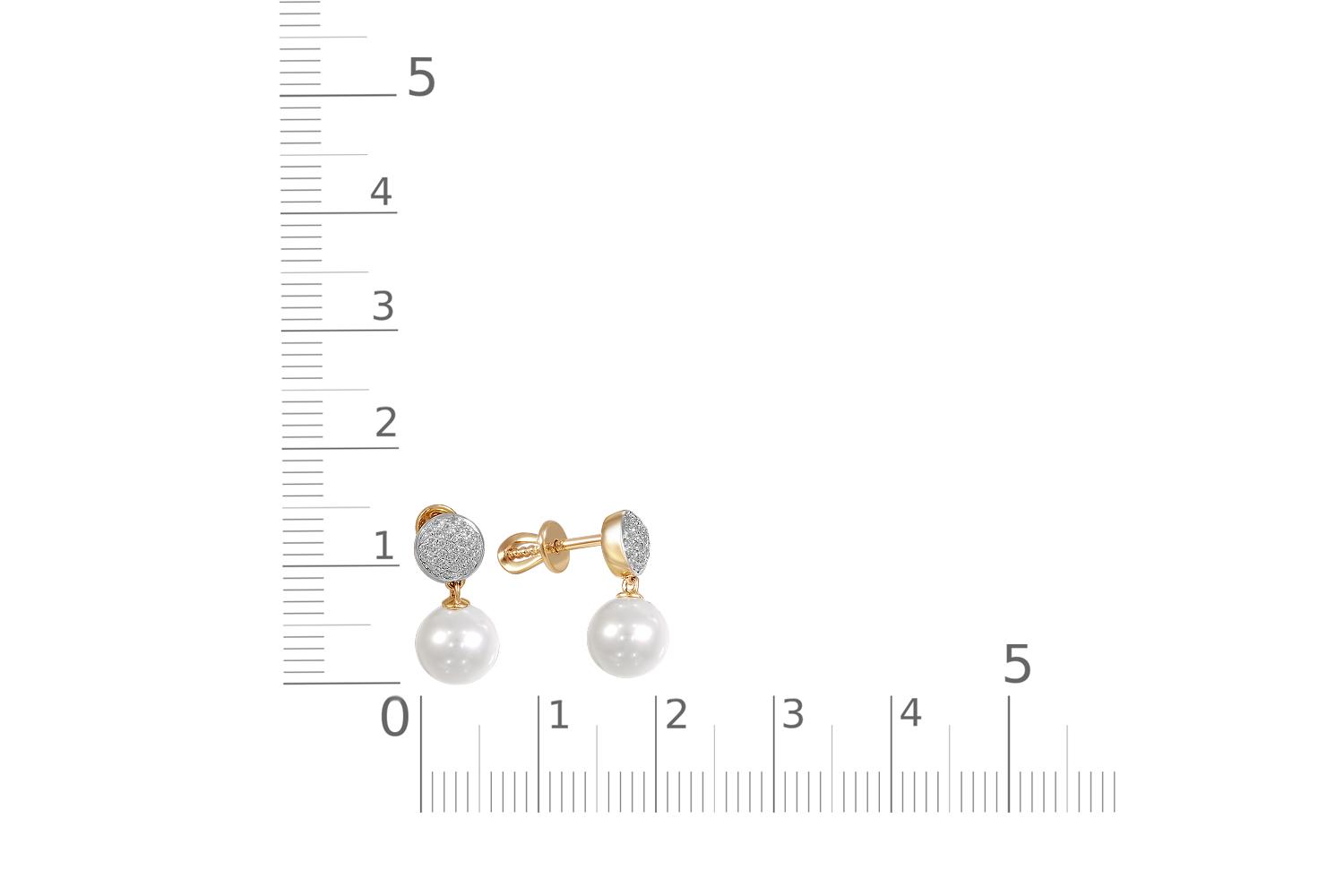 Жемчуг белый натуральный, количество 2 шт., огранка круг, размер 8ˣ8,5 ; Фианит б/цв, количество 62 шт., огранка круг, размер 0,9 мм