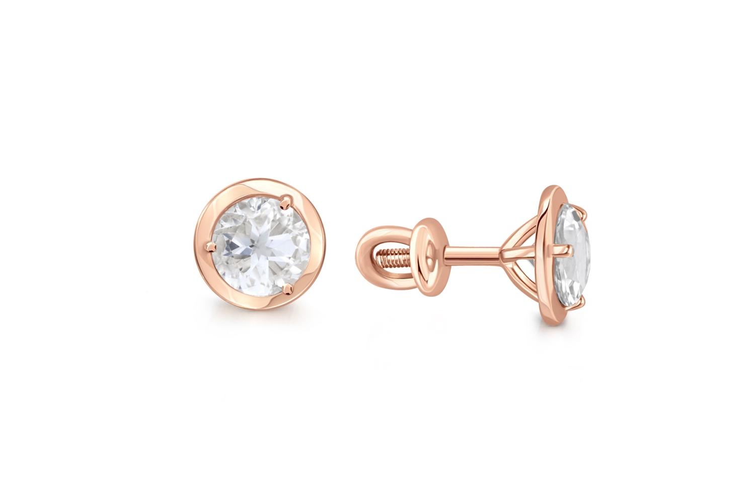 Закажите Серьги-пусеты из красного золота с горным хрусталём с получением в Москве через курьерскую службу доставки напрямую с нашего производственного склада завода NEWGOLD!