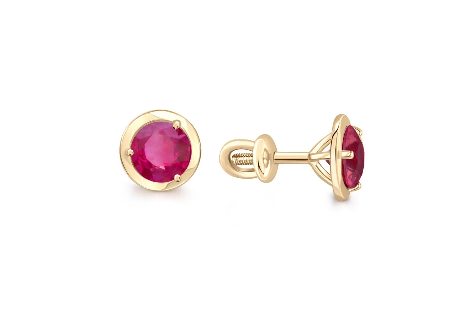 Мастера компании NEWGOLD, приложив всё свое мастерство и искусство, создали для Вас на нашем собственном производстве Серьги-пусеты из жёлтого золота с 2 рубинами.