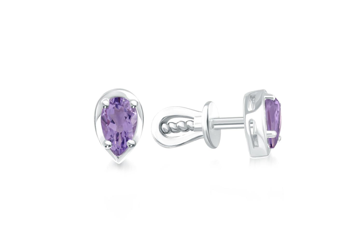 Мастера компании NEWGOLD, приложив всё свое мастерство и искусство, создали для Вас на нашем собственном производстве Серьги-пусеты из белого золота с 2 аметистами.