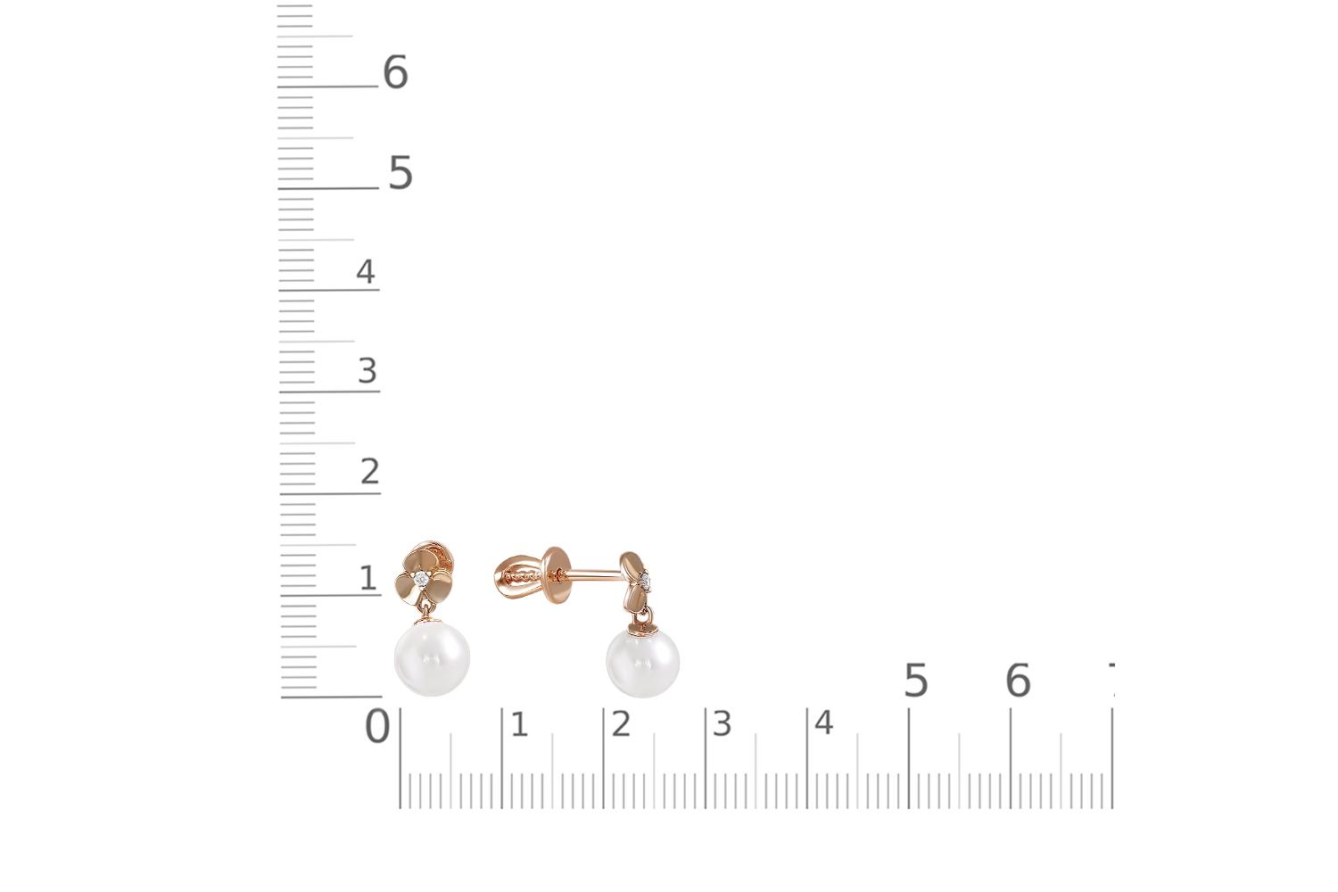 Жемчуг белый натуральный, количество 2 шт., огранка круг, размер 6ˣ6,5 ; Фианит б/цв, количество 2 шт., огранка круг, размер 1,5 мм