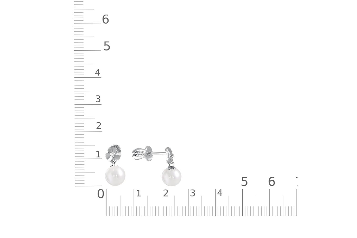 Жемчуг белый натуральный, количество 2 шт., огранка круг, размер 6ˣ6,5 ; Фианит б/цв, количество 2 шт., огранка круг, размер 1,5 мм
