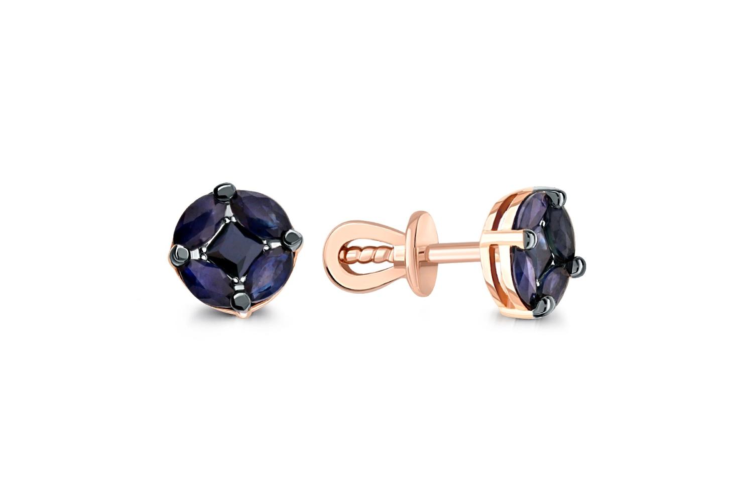Мастера компании NEWGOLD, приложив всё свое мастерство и искусство, создали для Вас на нашем собственном производстве Серьги-пусеты из красного золота с 10 сапфирами.