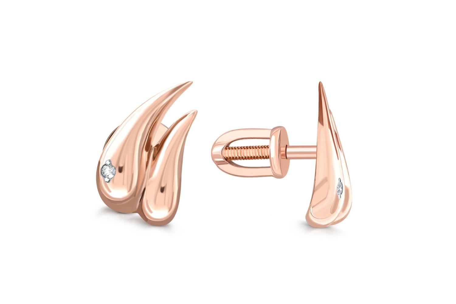 Мастера компании NEWGOLD, приложив всё свое мастерство и искусство, создали для Вас на нашем собственном производстве Серьги-пусеты из красного золота с 2 бриллиантами.