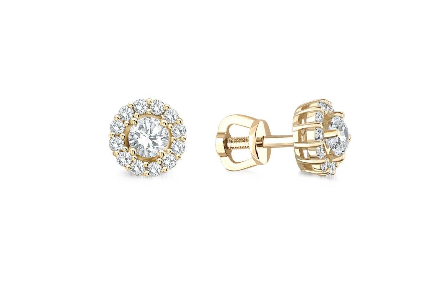 Мастера компании NEWGOLD, приложив всё свое мастерство и искусство, создали для Вас на нашем собственном производстве Серьги-пусеты из жёлтого золота с 26 муассанитами.