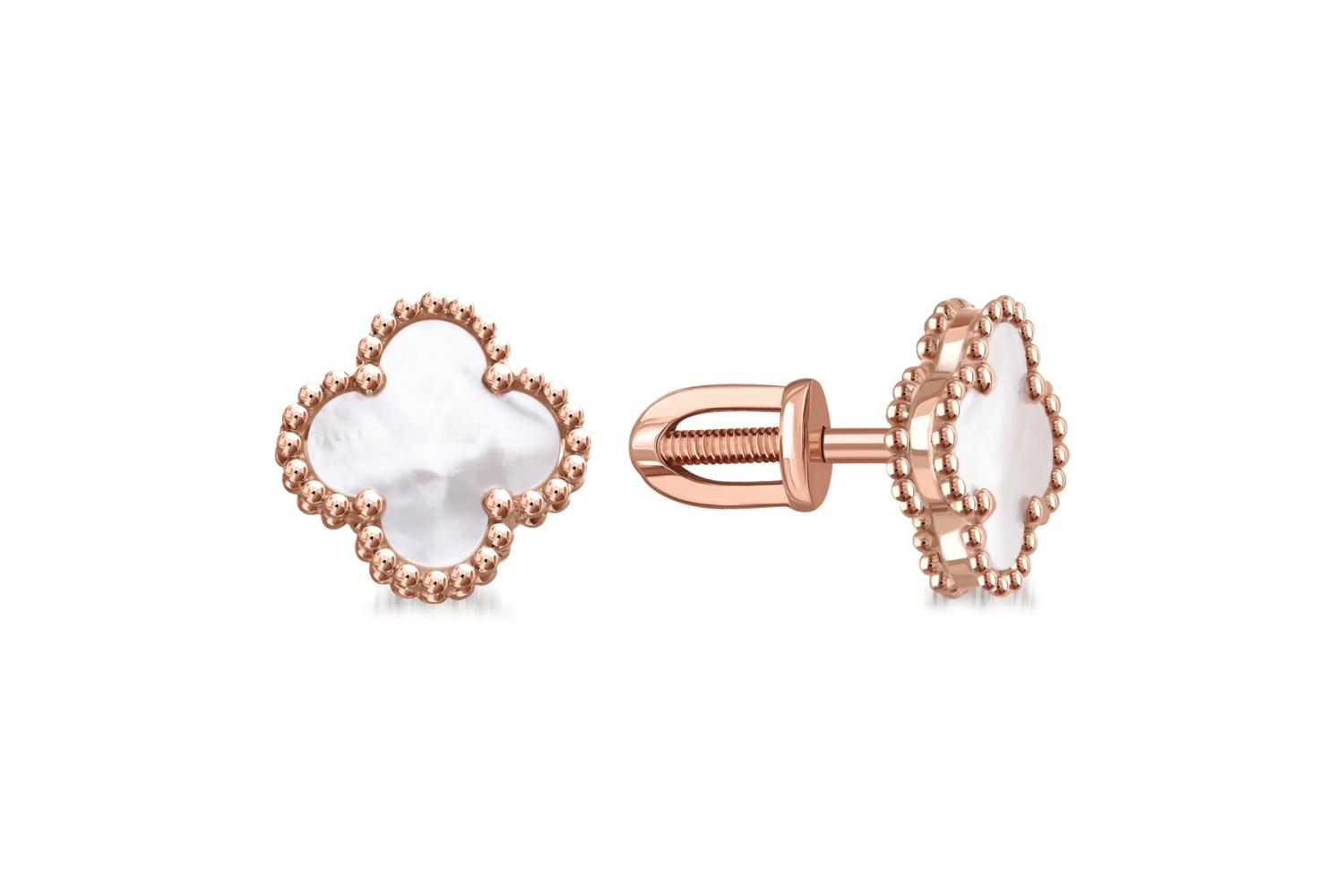 Мастера компании NEWGOLD, приложив всё свое мастерство и искусство, создали для Вас на нашем собственном производстве Серьги-пусеты из красного золота с перламутром.