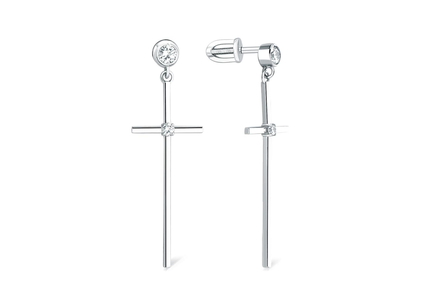 Мастера компании NEWGOLD, приложив всё свое мастерство и искусство, создали для Вас на нашем собственном производстве Серьги-пусеты Кресты из белого золота с 4 фианитами.