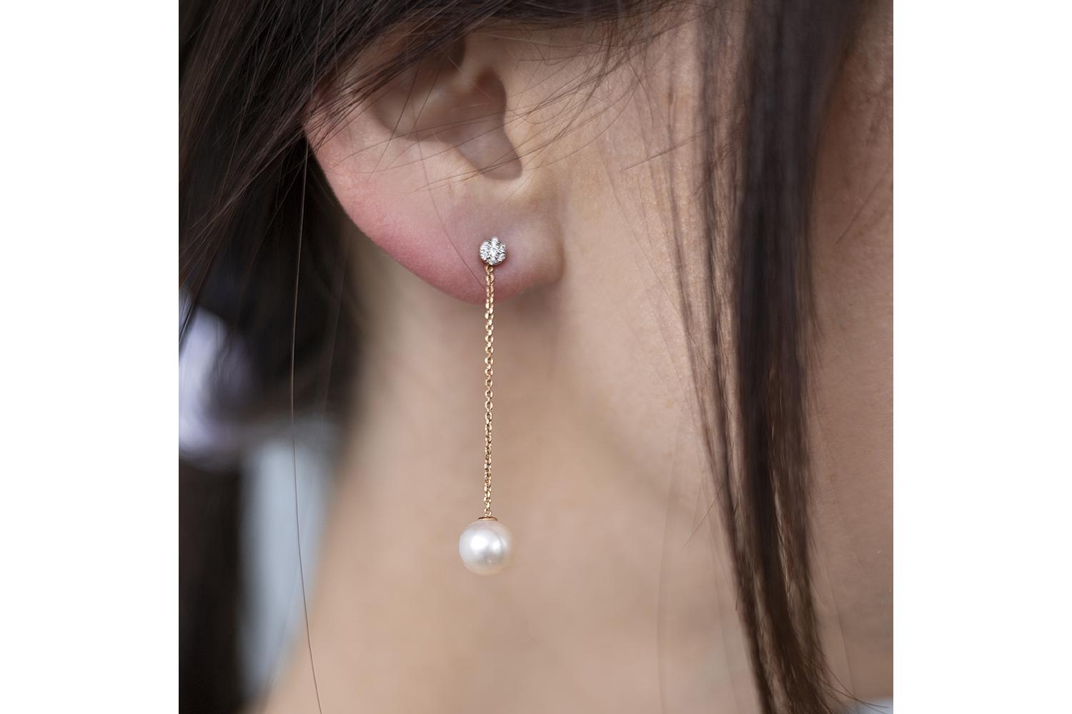 Мастера компании NEWGOLD, приложив всё свое мастерство и искусство, создали для Вас на нашем собственном производстве Серьги-пусеты из красного золота с 2 жемчужинами и 14 фианитами.