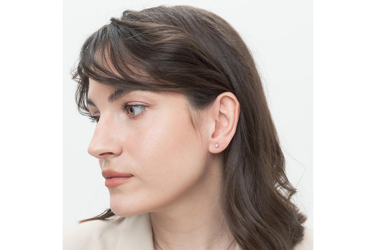 Закажите Серьги-пусеты из белого золота с 2 бриллиантами с получением в Москве через курьерскую службу доставки напрямую с нашего производственного склада завода NEWGOLD!