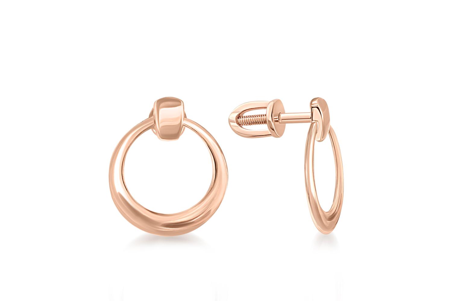 Закажите Серьги-пусеты Круги из красного золота без вставок с получением в Москве через курьерскую службу доставки напрямую с нашего производственного склада завода NEWGOLD!