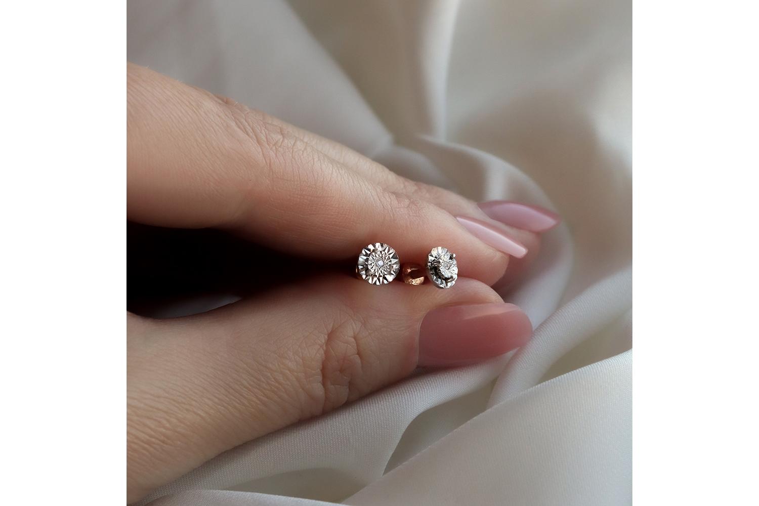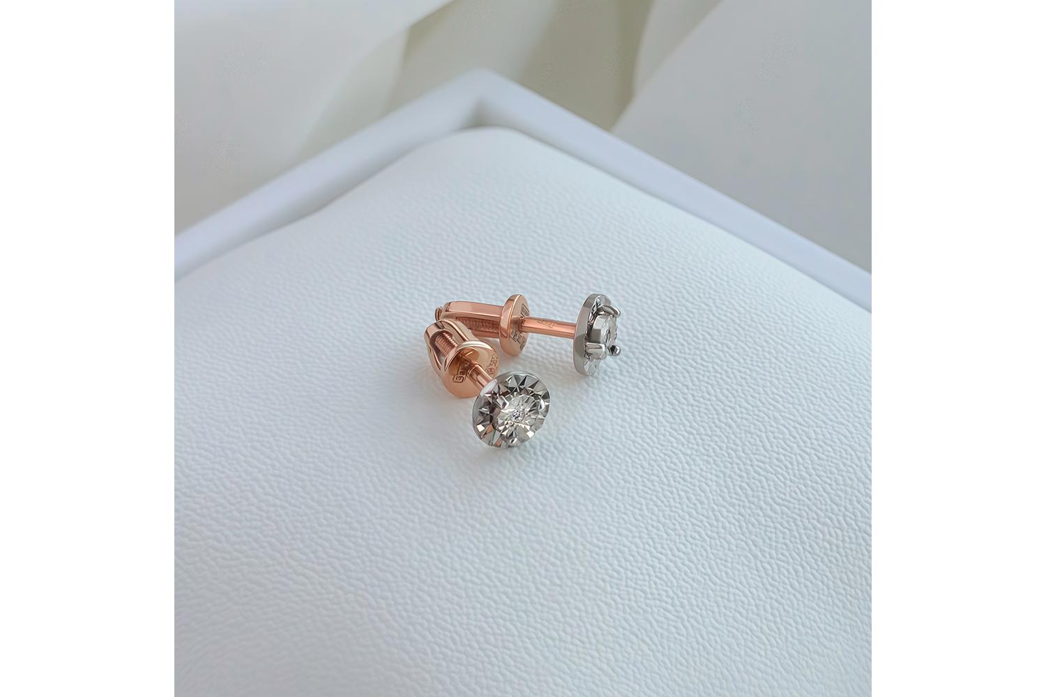 Закажите Серьги-пусеты из красного золота с 2 бриллиантами с получением в Москве через курьерскую службу доставки напрямую с нашего производственного склада завода NEWGOLD!