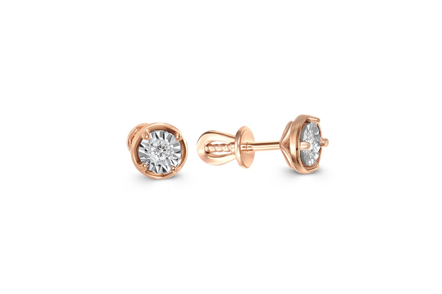 Коллекция: Illusion. Металл: Золото, цвет: Красный/Белый, проба: 585. Вставки: Бриллиант, количество 2 шт. , огранка Кр-57, размер 2 мм, цвет 4, чистота 5.