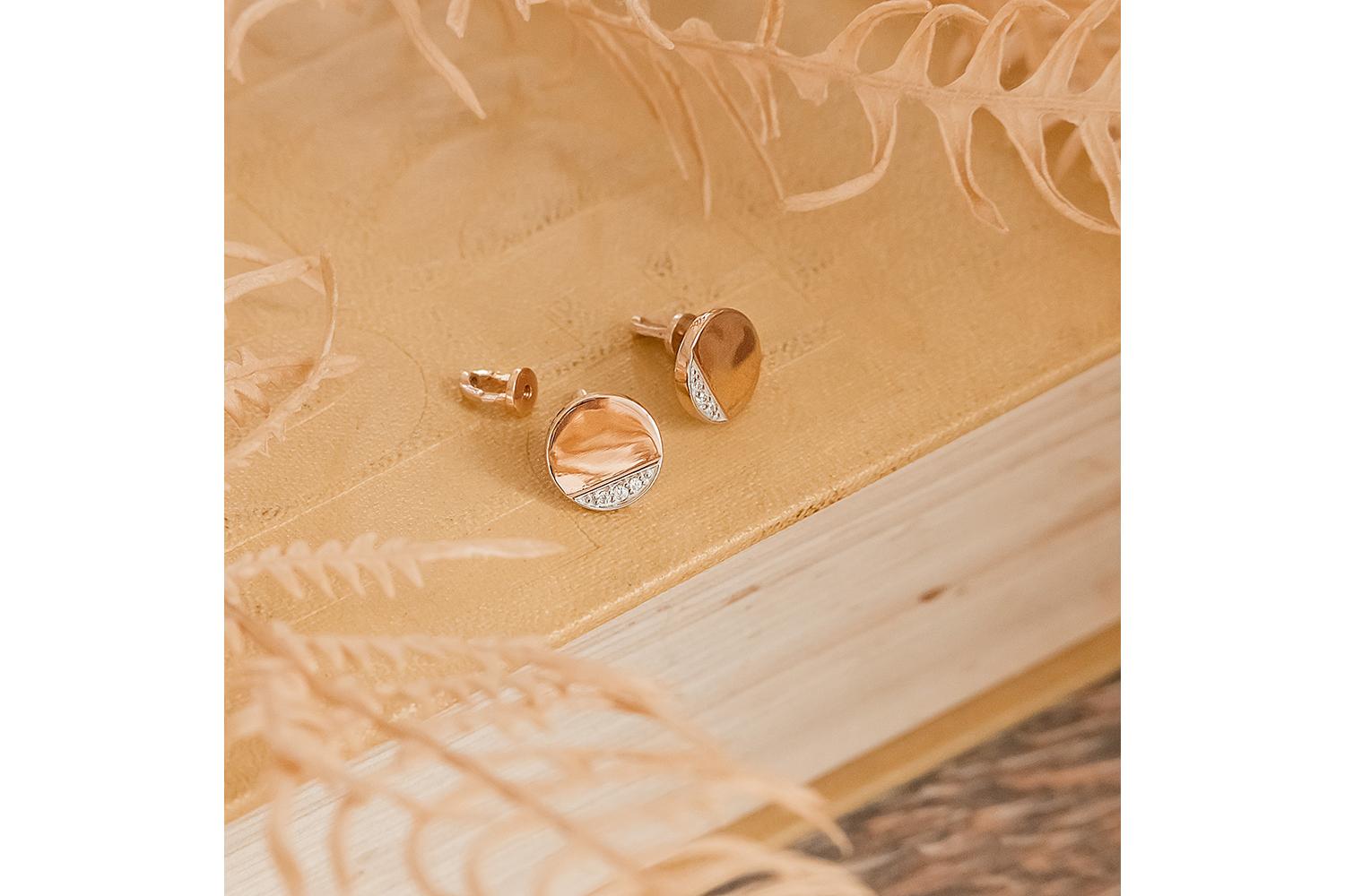 Мастера компании NEWGOLD, приложив всё свое мастерство и искусство, создали для Вас на нашем собственном производстве Серьги-пусеты Круги из красного золота с 6 фианитами.