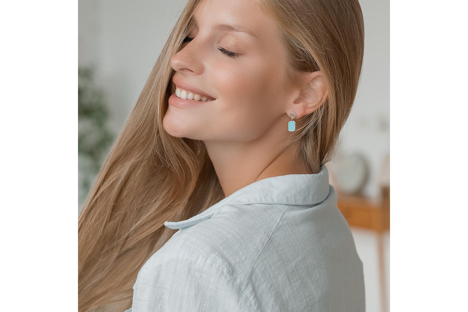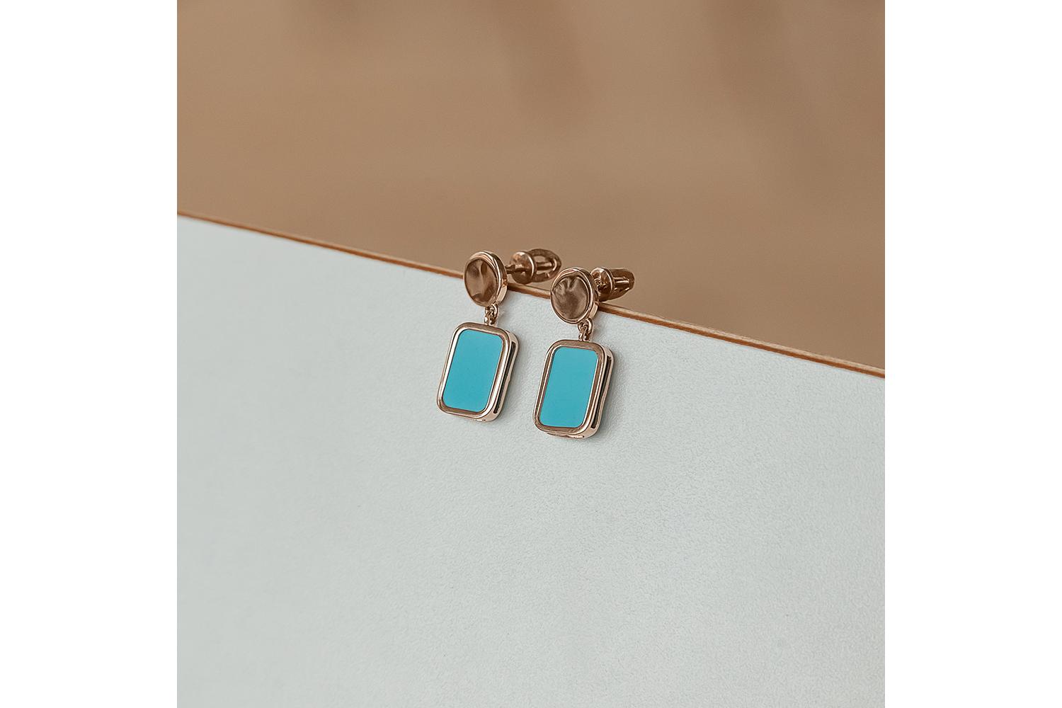 Мастера компании NEWGOLD, приложив всё свое мастерство и искусство, создали для Вас на нашем собственном производстве Серьги-пусеты Прямоугольники из красного золота с бирюзой. Это изделие изысканного дизайна Вы можете приобрести в Москве с доставкой на дом. Также Вы имеете уникальную возможность заказать для себя изготовление нового эксклюзивного варианта украшения. Гарантируем высокое качество по доступной цене на весь представленный ассортимент. Хороших покупок!