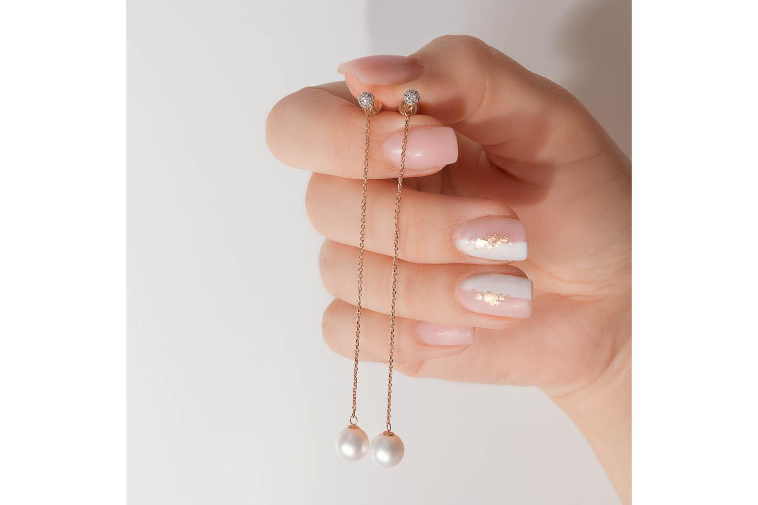 Мастера компании NEWGOLD, приложив всё свое мастерство и искусство, создали для Вас на нашем собственном производстве Серьги-пусеты из красного золота с 2 жемчужинами и 14 бриллиантами.