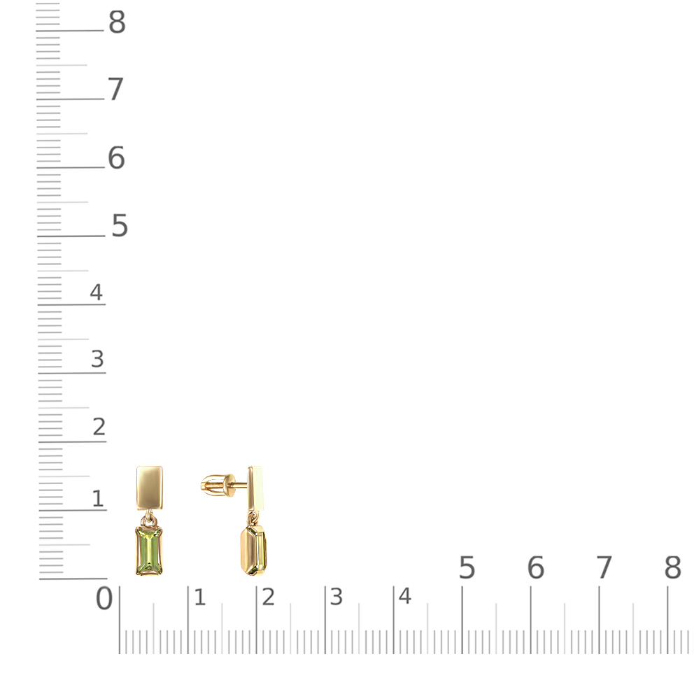 Мастера компании NEWGOLD, приложив всё свое мастерство и искусство, создали для Вас на нашем собственном производстве Серьги-пусеты Прямоугольники из жёлтого золота с 2 хризолитами.