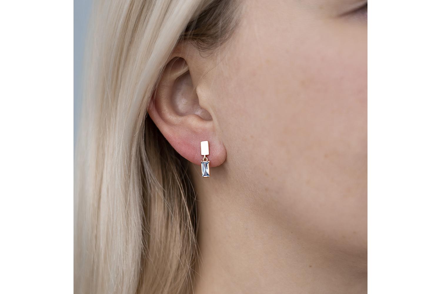 Мастера компании NEWGOLD, приложив всё свое мастерство и искусство, создали для Вас на нашем собственном производстве Серьги-пусеты Прямоугольники из красного золота с 2 топазами swiss.