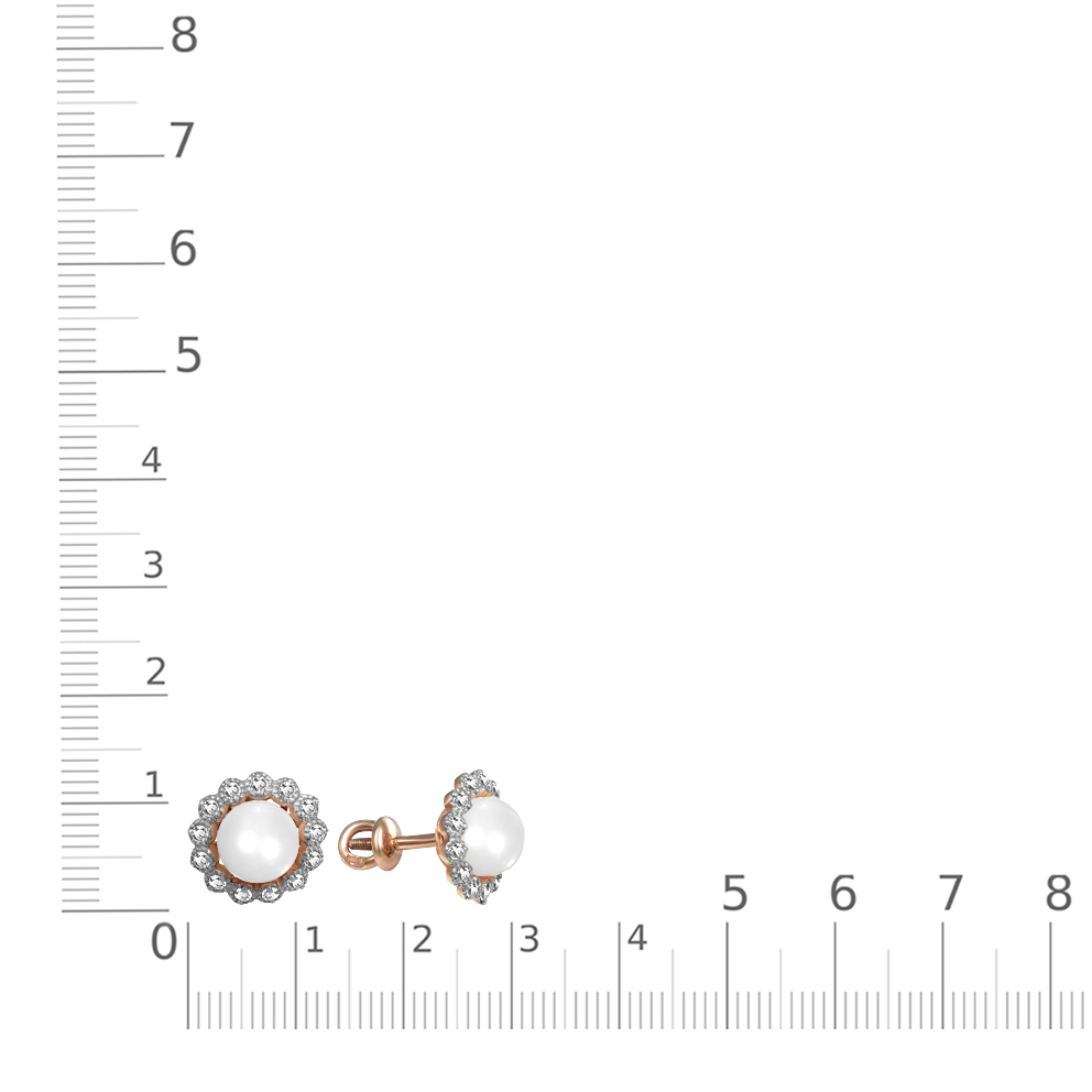 Мастера компании NEWGOLD, приложив всё свое мастерство и искусство, создали для Вас на нашем собственном производстве Серьги-пусеты Цветы из красного золота с 2 жемчужинами и 26 фианитами.