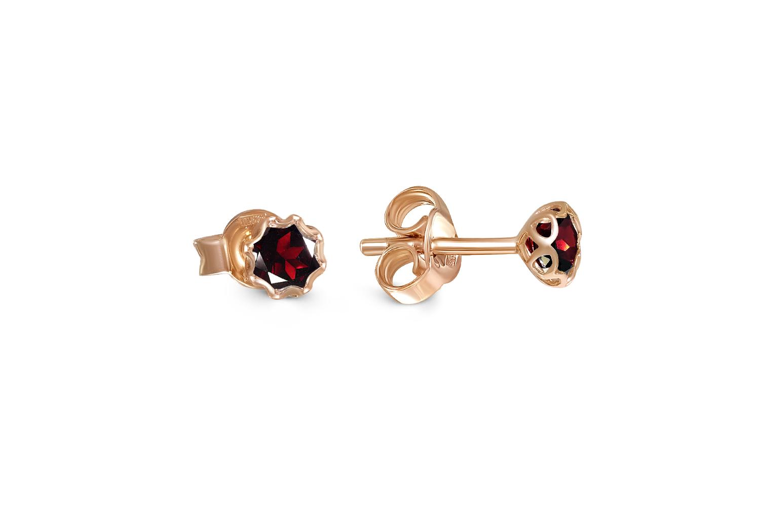 Закажите Серьги-пусеты из красного золота с 2 гранатами с получением в Москве через курьерскую службу доставки напрямую с нашего производственного склада завода NEWGOLD!