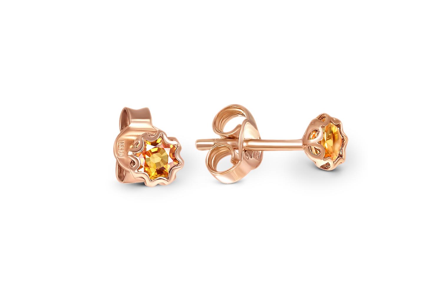 Закажите Серьги-пусеты из красного золота с 2 цитринами с получением в Москве через курьерскую службу доставки напрямую с нашего производственного склада завода NEWGOLD!