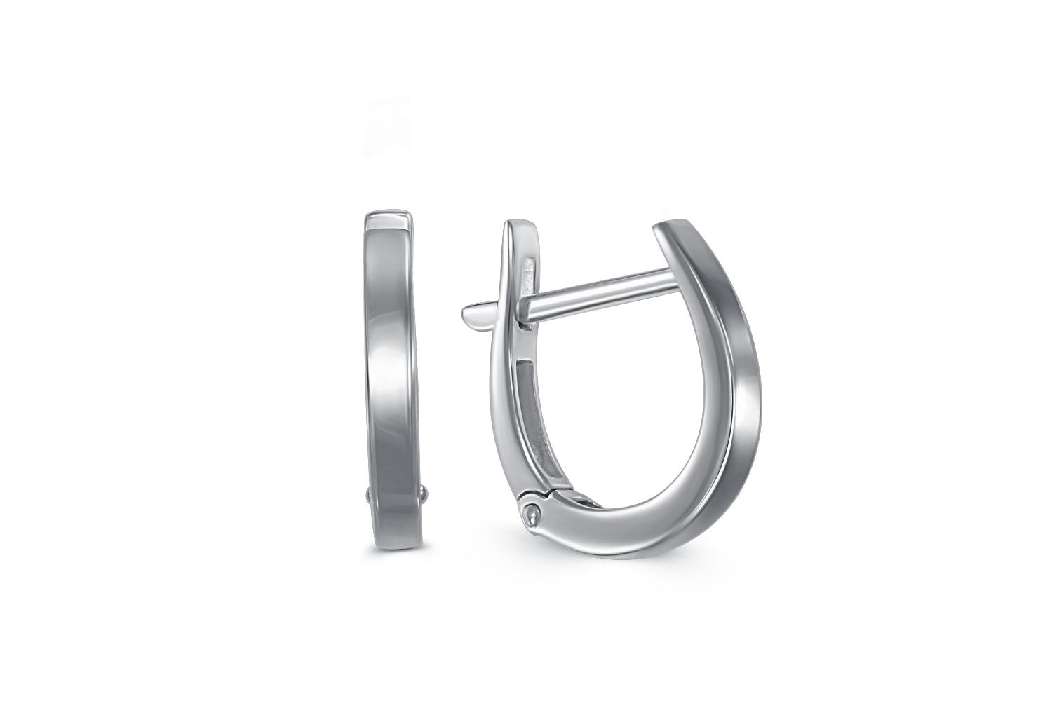 Изящные серьги-конструкторы из белоснежного золота представляют собой классический образец минималистичного дизайна. Их геометрическая форма напоминает изящную подкову с продуманным механизмом замка. Плавные линии и зеркальная поверхность металла создают впечатление легкости и современности.