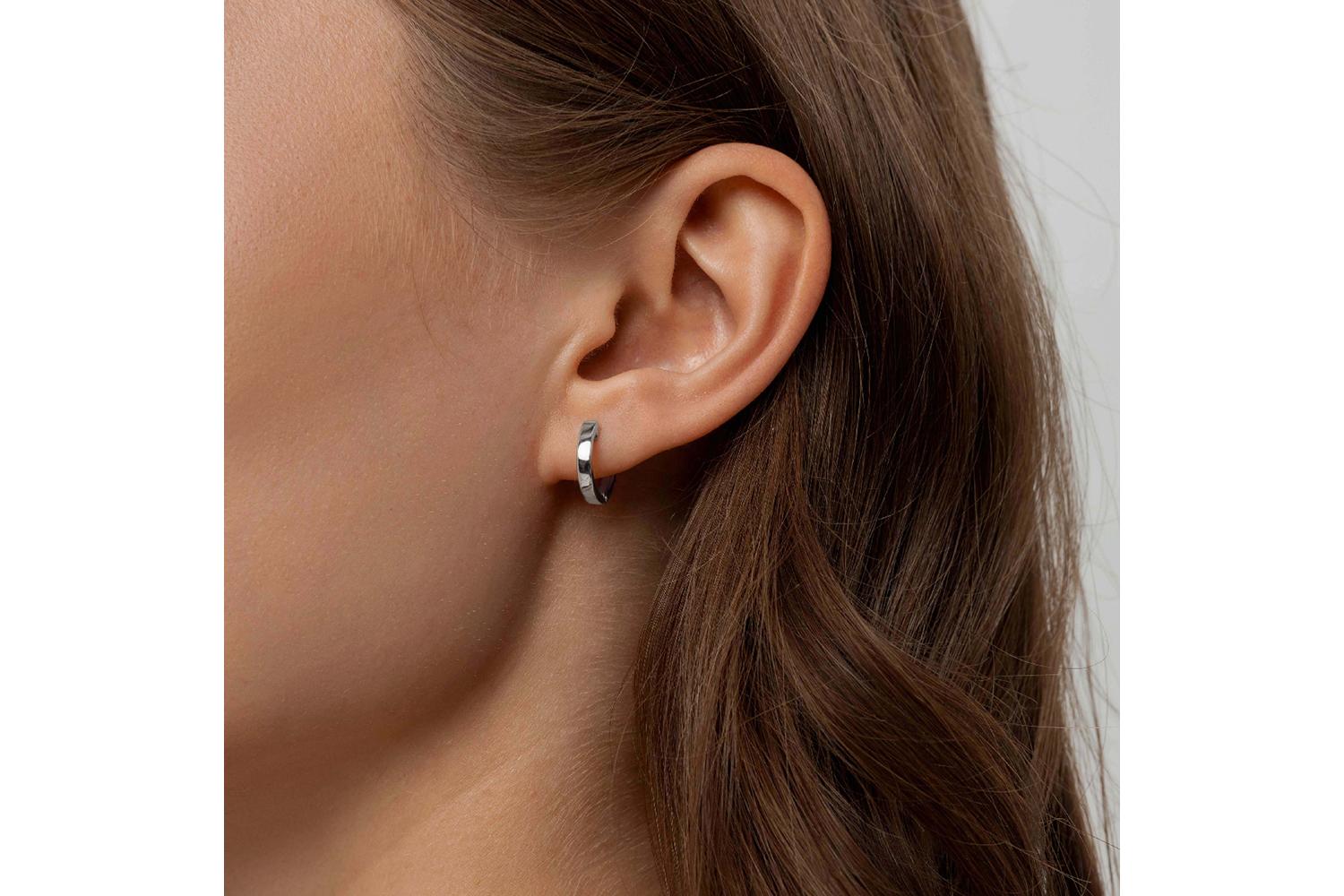 Представленные на изображении серьги-кольца из белого золота выполнены с безупречной геометрической точностью. Лаконичный дизайн подчеркивает чистоту линий и изящество формы.