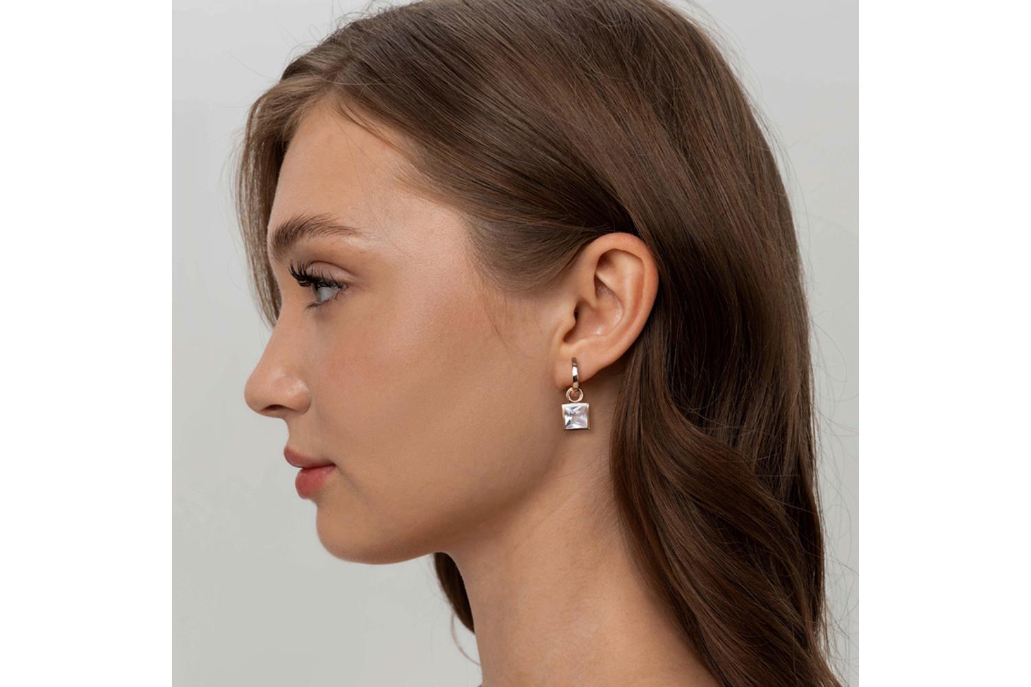 Изящный кулон с белоснежным камнем - воплощение минималистичной элегантности. Квадратная оправа из красного золота бережно обнимает прозрачный горный хрусталь, играющий мягкими светотеневыми переливами.