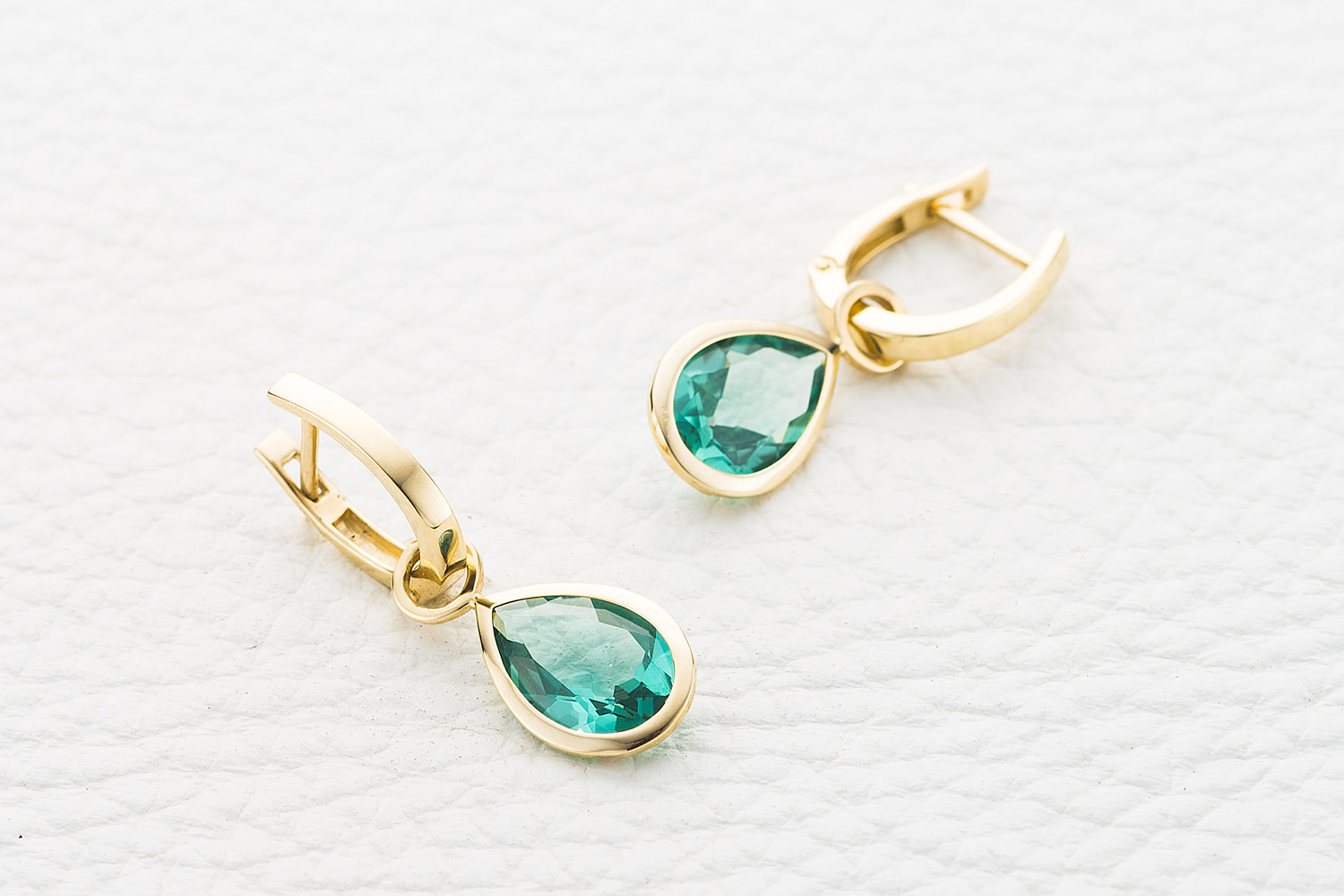 Кварц Зеленый искусственный, количество 2 шт., огранка груша, размер 12ˣ8