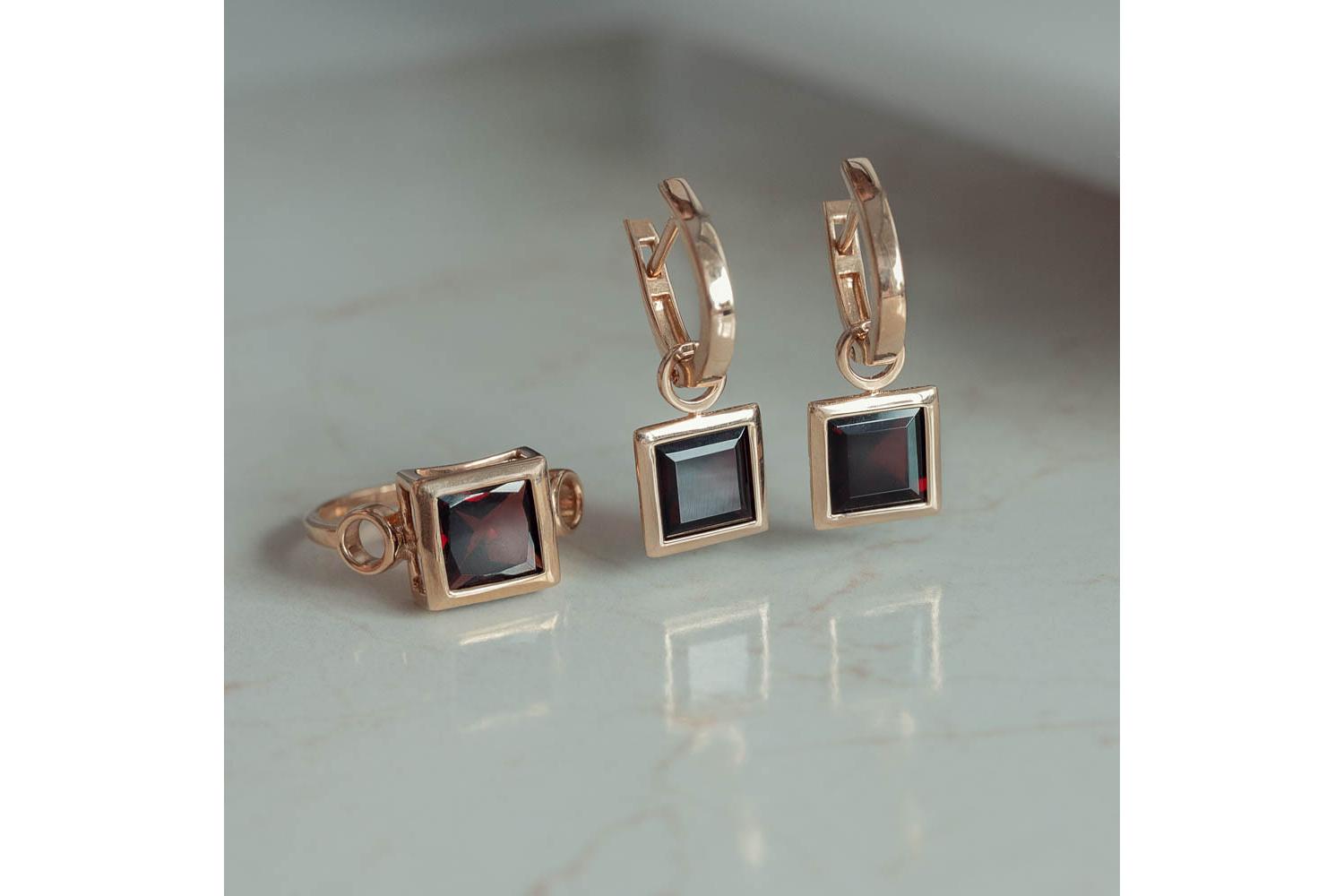 Мастера компании NEWGOLD, приложив всё свое мастерство и искусство, создали для Вас на нашем собственном производстве Серьги-трансформеры из красного золота с 2 гранатами.