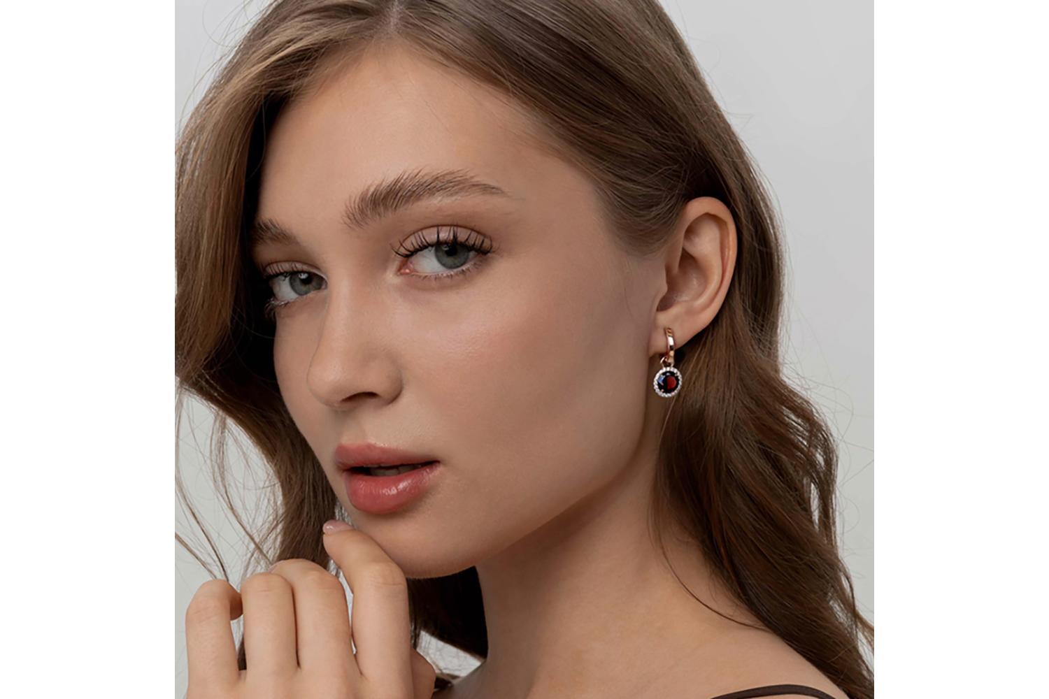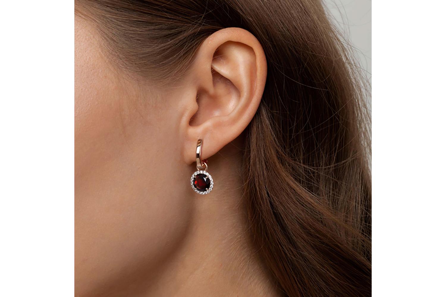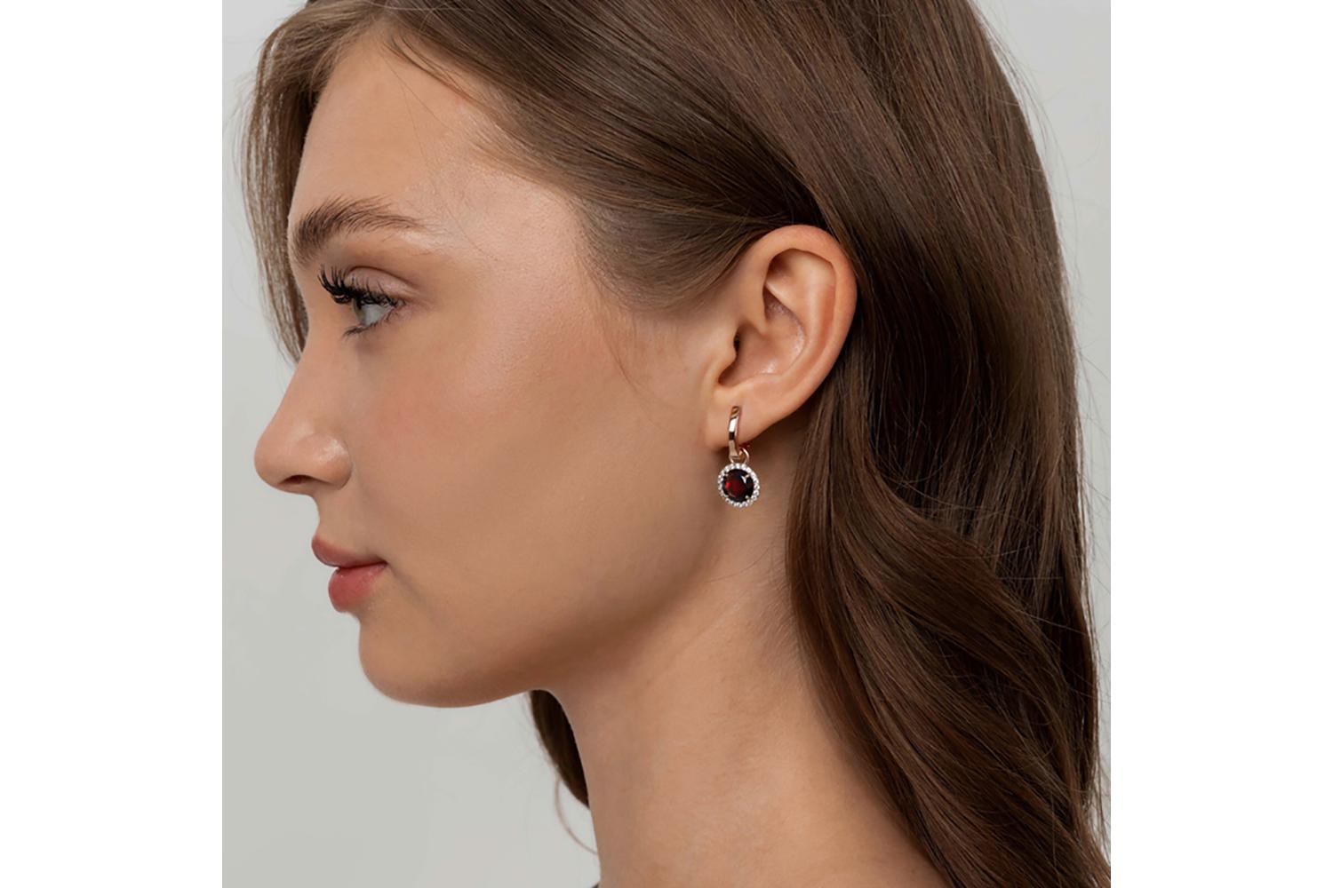 Мастера компании NEWGOLD, приложив всё свое мастерство и искусство, создали для Вас на нашем собственном производстве Подвеска серёг-трансформеров из красного золота с гранатом и 20 фианитами.