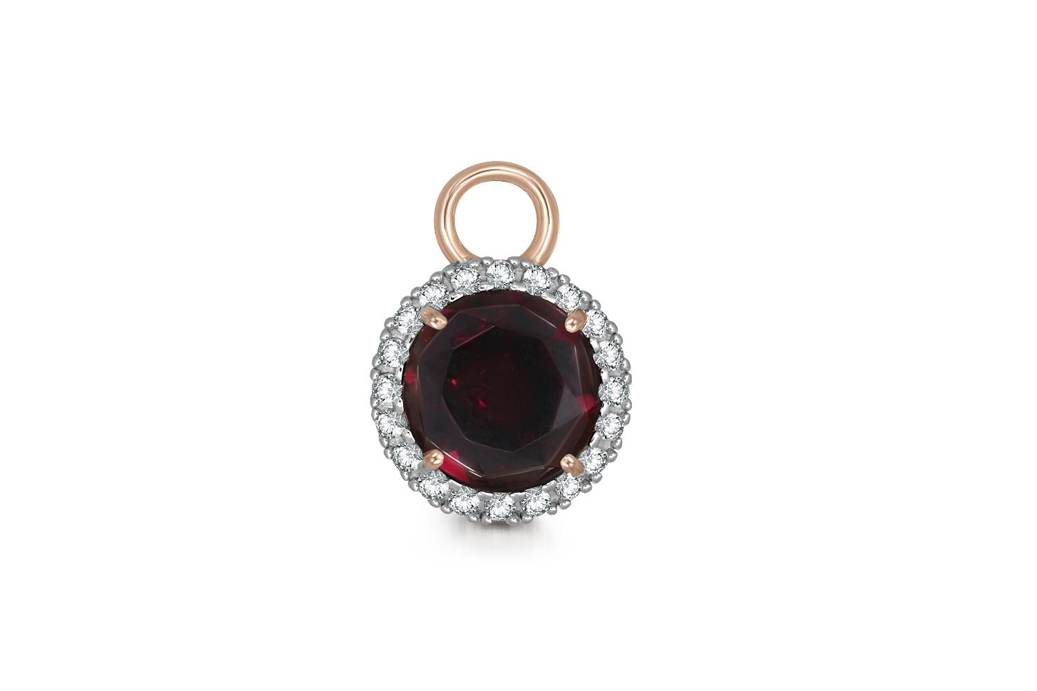 Гранат натуральный, количество 1 шт., огранка круг, размер 8 мм ; Фианит б/цв, количество 20 шт., огранка круг, размер 1,25 мм