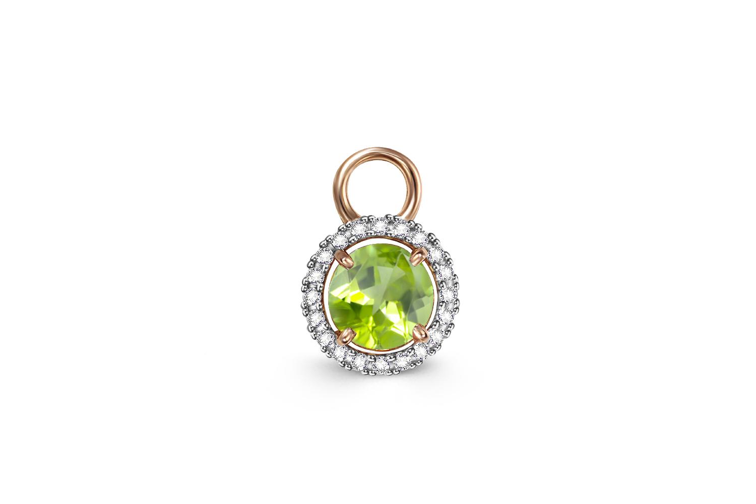 Хризолит натуральный, количество 1 шт., огранка круг, размер 6 мм ; Фианит б/цв, количество 20 шт., огранка круг, размер 1 мм