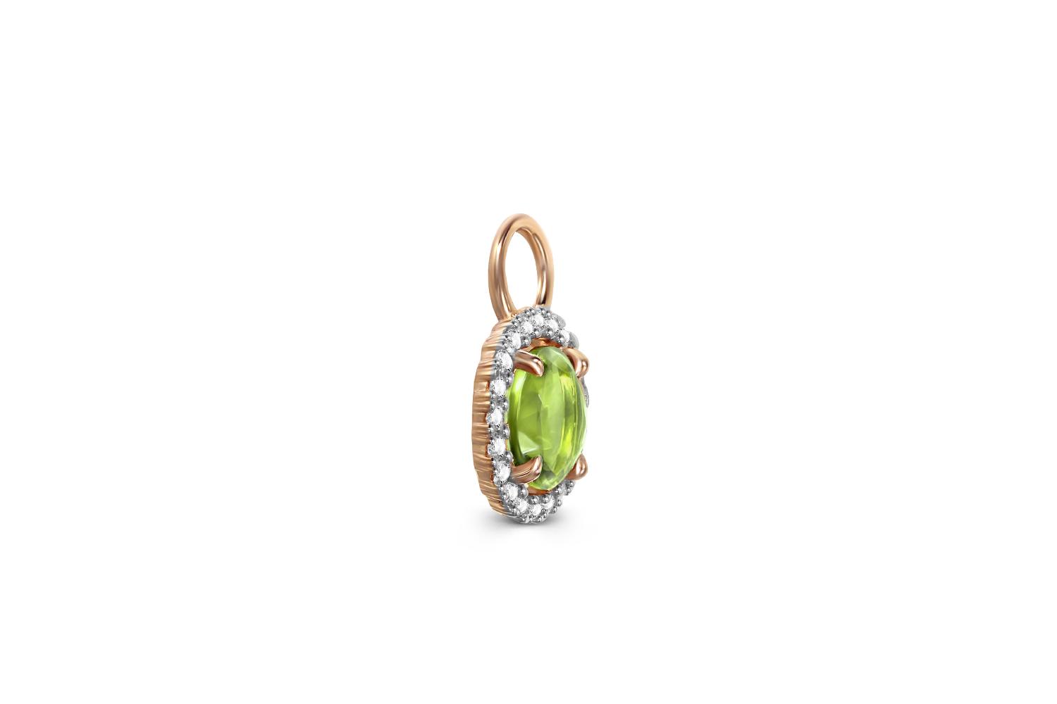 Мастера компании NEWGOLD, приложив всё свое мастерство и искусство, создали для Вас на нашем собственном производстве Подвеска серёг-трансформеров из красного золота с хризолитом и 20 фианитами.