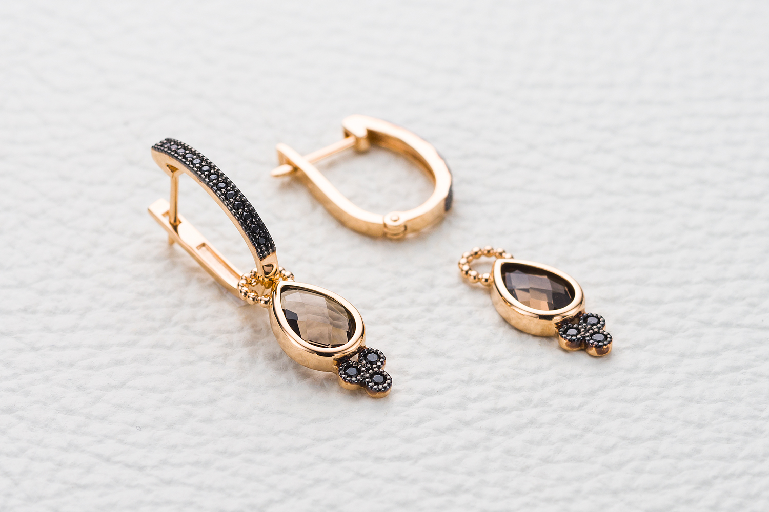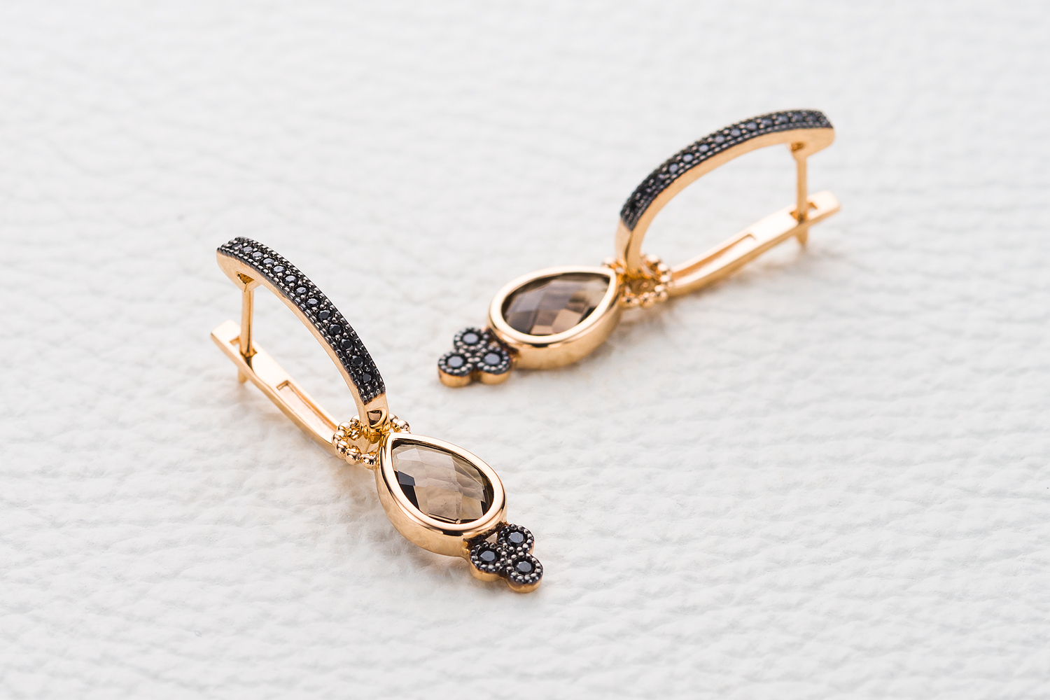 Мастера компании NEWGOLD, приложив всё свое мастерство и искусство, создали для Вас на нашем собственном производстве Серьги-трансформеры из красного золота с 2 раухтопазами и 6 фианитами.