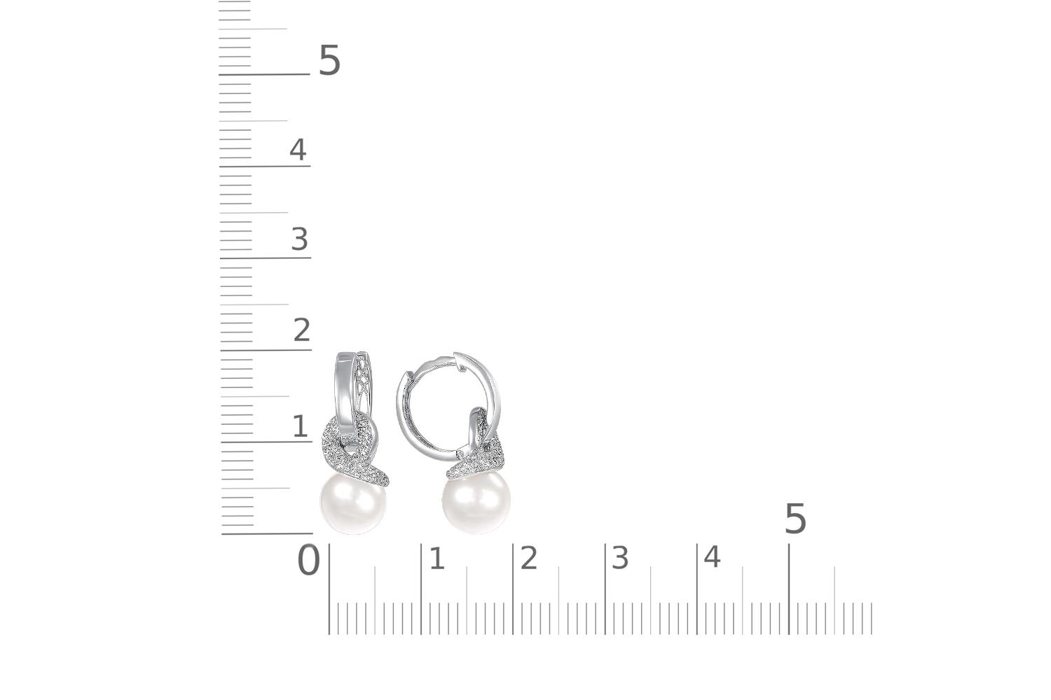 Жемчуг белый натуральный, количество 2 шт., огранка круг, размер 8ˣ8,5 ; Фианит б/цв, количество 86 шт., огранка круг, размер 0,9 мм