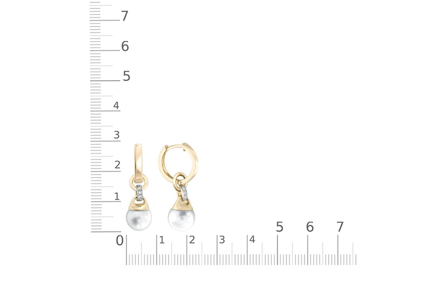 Жемчуг белый натуральный, количество 2 шт., огранка круг, размер 8ˣ8,5 ; Фианит б/цв, количество 6 шт., огранка круг, размер 1,25 мм