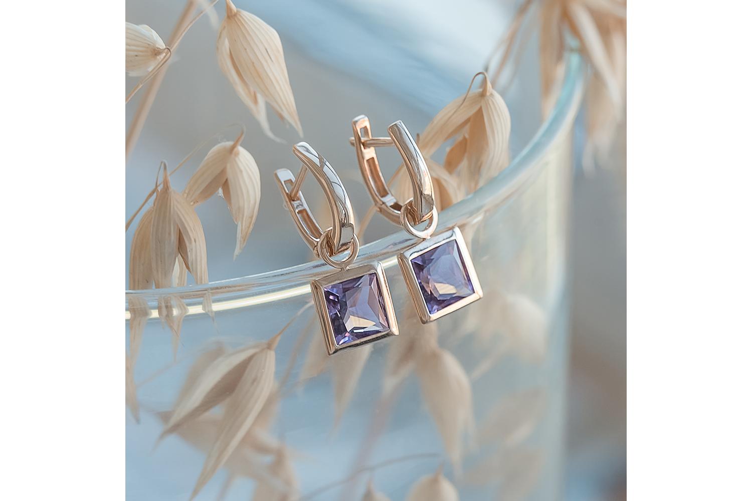 Мастера компании NEWGOLD, приложив всё свое мастерство и искусство, создали для Вас на нашем собственном производстве Серьги-трансформеры из красного золота с 2 аметистами.